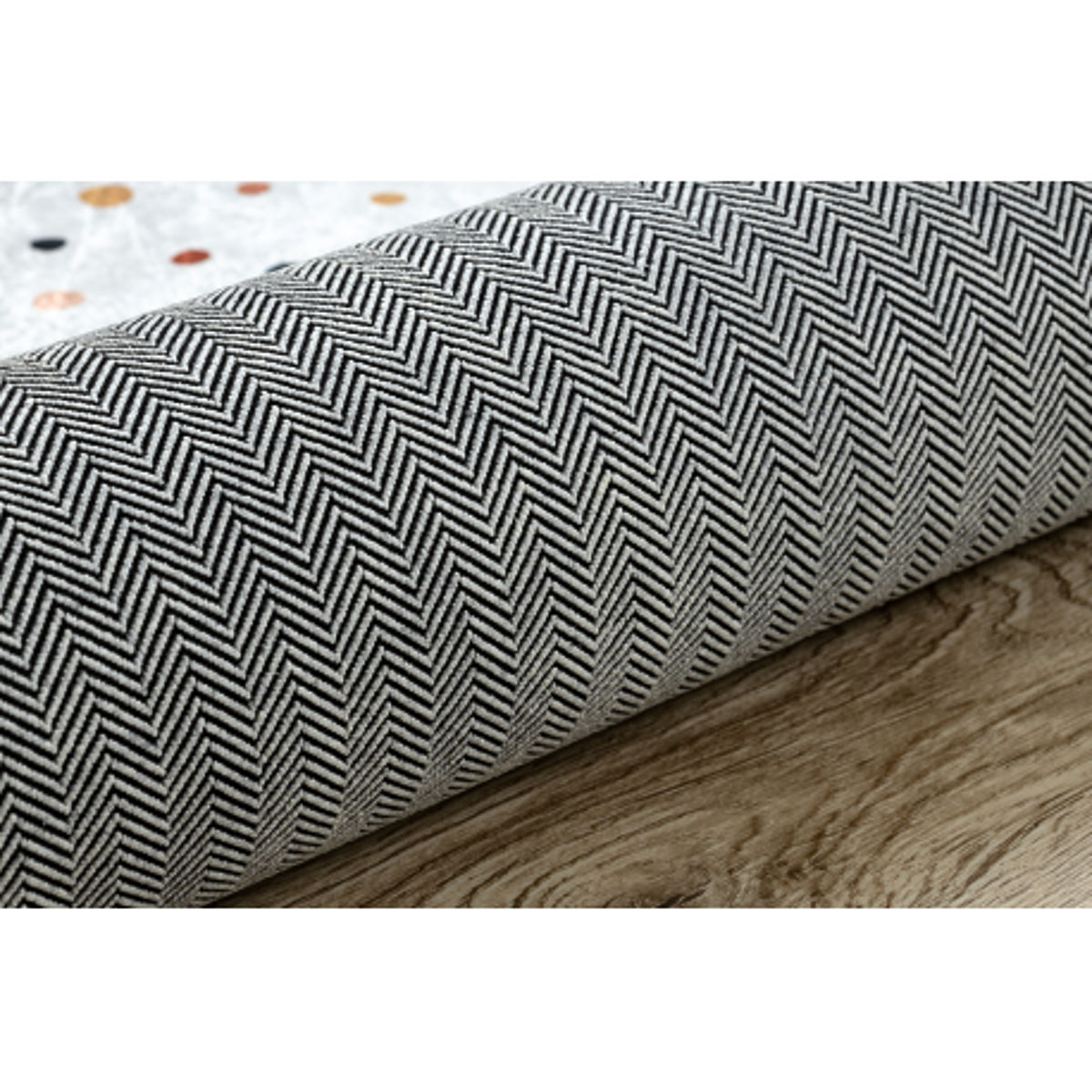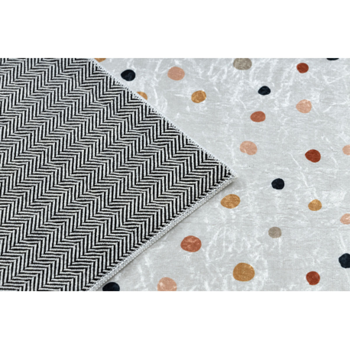 Bring joy, softness, and a clean design to the children's room with the BAMBINO 47890 washing mat. The pattern of small dots in a combination of white and brown colors creates a calming and timeless impression, making the mat suitable for any interior—from modern to naturally styled children's rooms. It is an ideal mat for everyday play, first steps, and comfortable sitting. The mat is made from 100% polyester, which is soft, pleasant to the touch, and practical at the same time. The 5 mm thickness provides comfort and lightness, while the weight of 0.70 kg/m² allows for easy portability. A major benefit is the machine washable feature, making it really easy to keep the mat hygienically clean. The anti-slip bottom ensures stability and safety during play, preventing the mat from slipping even on smooth floors.