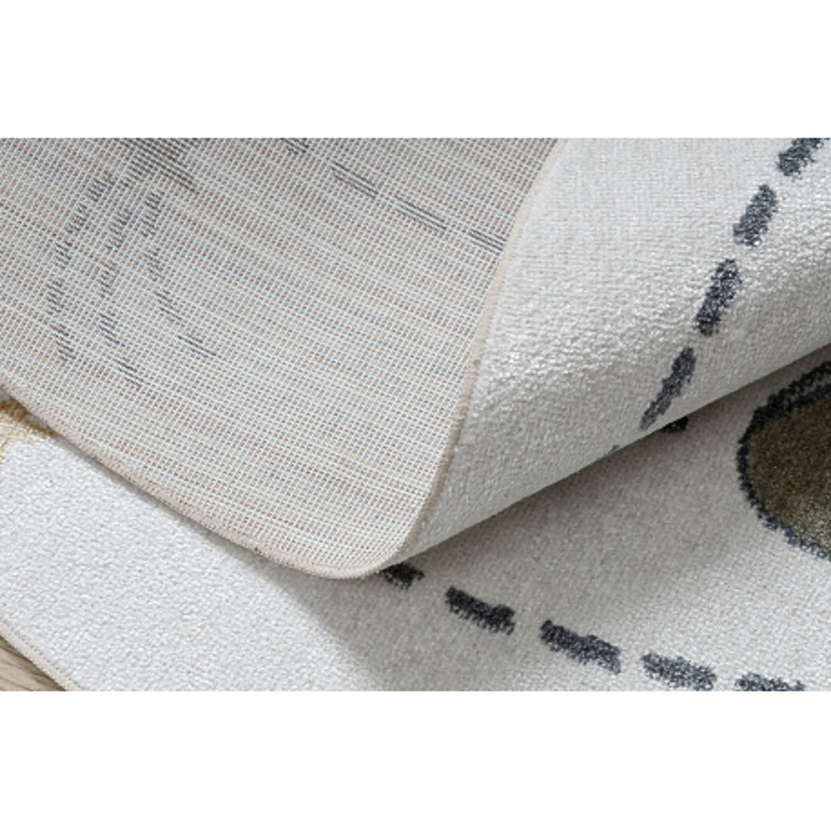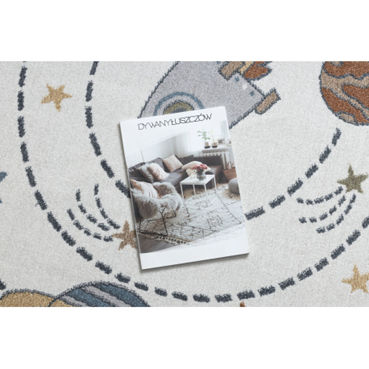 The round carpet BONO 8288 Space and Planets transports children's imagination to outer space. The cream background complemented by anthracite details creates a modern and visually attractive combination that fits perfectly into both boys' and girls' rooms.