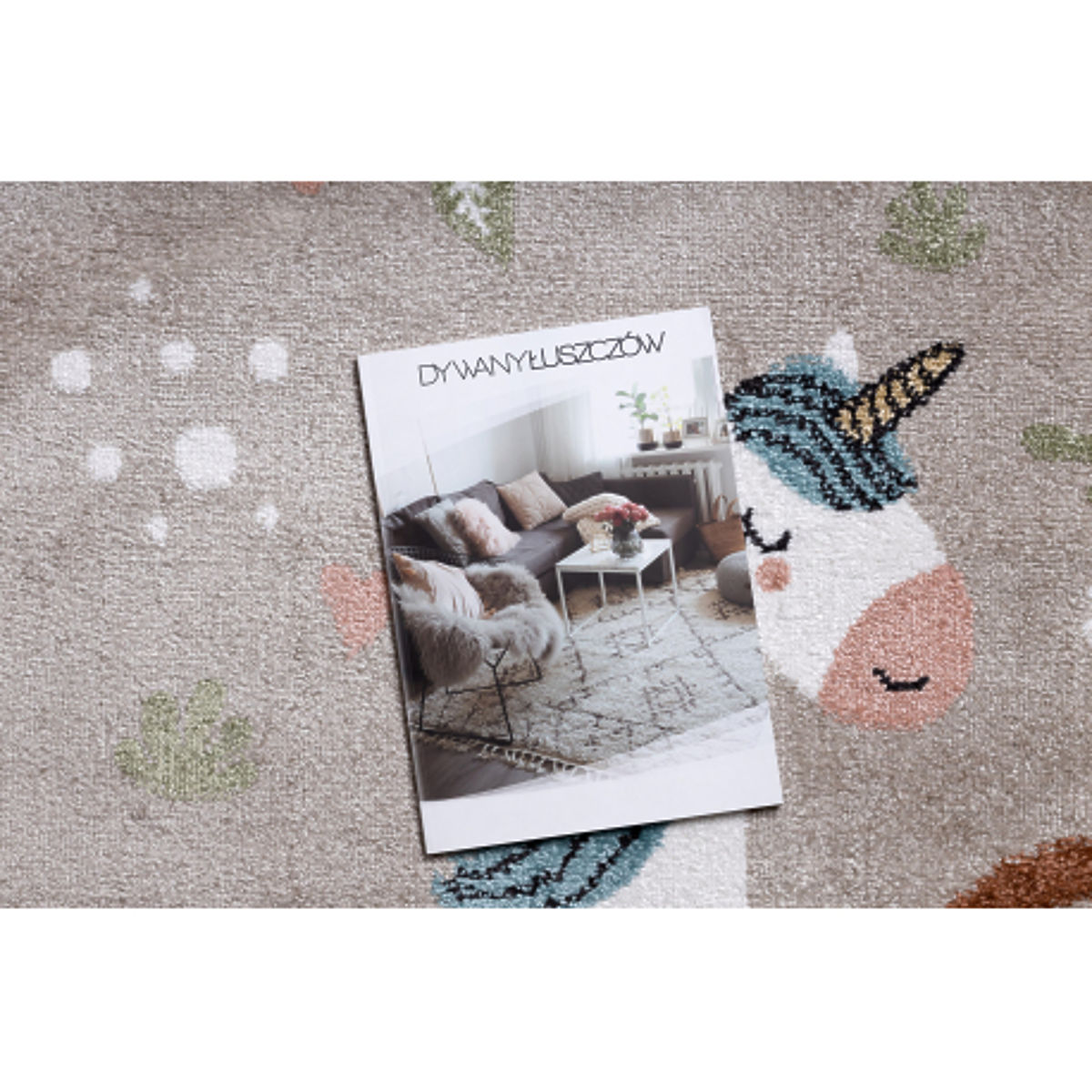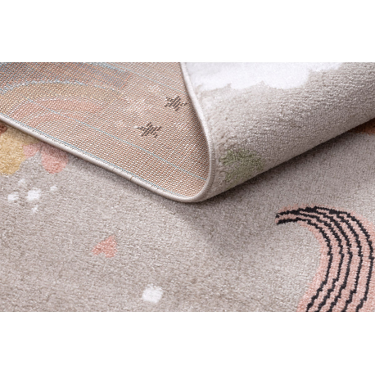 Soft beige children's rug with unicorn and rainbow design. .. more
