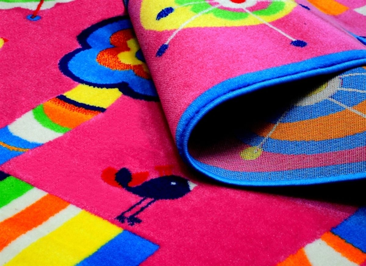 Vibrant, colourful, fun, that is this good-quality children's rug with a happy garden motif. It features flower and bird motifs that can make every girl's bedroom look cosier and more fun. The rug is made of heat-set polypropylene fibres and the backing is rough canvas.