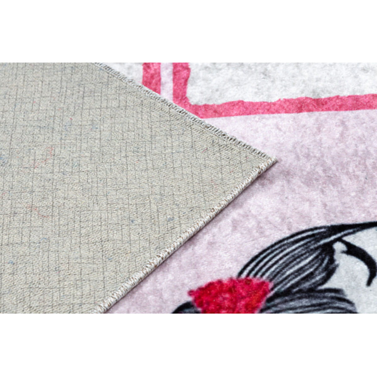 Bring playfulness and joy to your child's room with our rectangular JUNIOR rug featuring a ballerina motif. The soft pink design and cheerful pattern inspire children to move and play while adding coziness to the space. The rug is soft, pleasant to the touch, safe thanks to its anti-slip backing, and very easy to maintain – it can be machine washed. Perfect for a playroom, children's room, or relaxation corner.