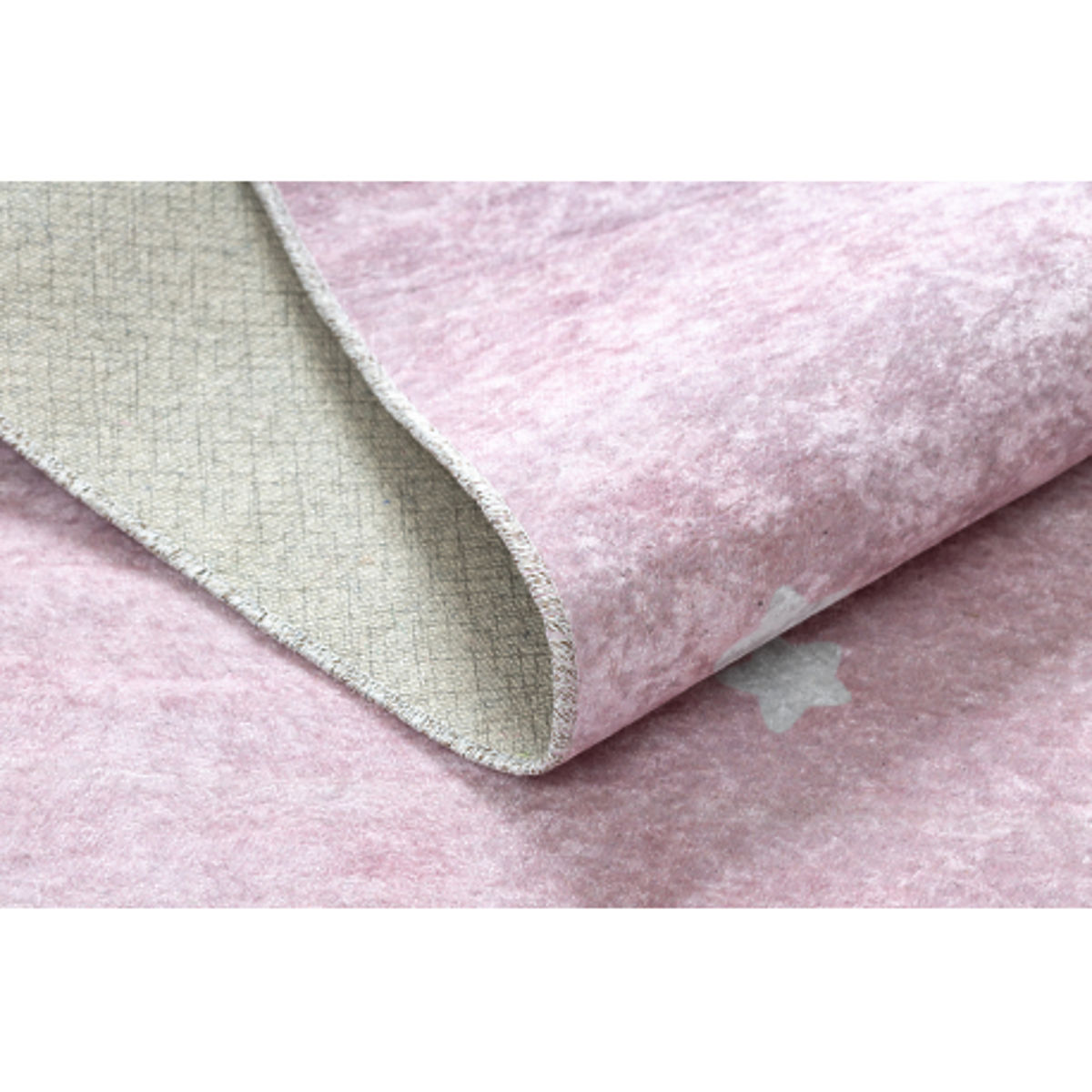 Bring colorful joy to your child's room with the rectangular JUNIOR carpet featuring a rainbow and cloud design. The soft pink finish with a cheerful pattern stimulates children's imagination and playfulness, adding coziness to the space. The carpet is soft and pleasant to the touch, safe thanks to its anti-slip underside, and easy to maintain – it can be machine washed. Perfect for a playroom, children's room, or relaxation corner.