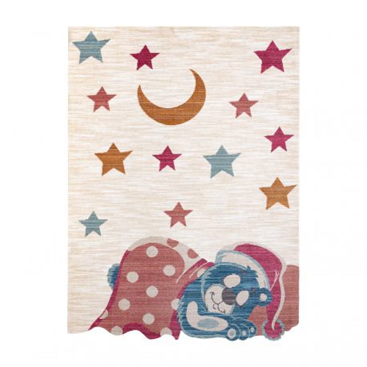 Make the children's room cozy with the adorable TOYS rug featuring a teddy bear motif. The irregular shape gives the rug an original look and attracts attention as both a decoration and a play area. The combination of soft cream with playful tones of red and fuchsia creates a pleasant, cheerful atmosphere that beautifully enlivens both girls' and boys' rooms. The rug is made of high-quality polyester, which is soft, durable, and pleasant to the touch. The thickness of 8 mm ensures a comfortable step and an ideal surface for playing. With a weight of 1.60–2.20 kg/m² (depending on the pattern), it is stable and gives a quality impression. A great choice for a playroom, bedroom, or corner for little lovers of soft and cheerful motifs.