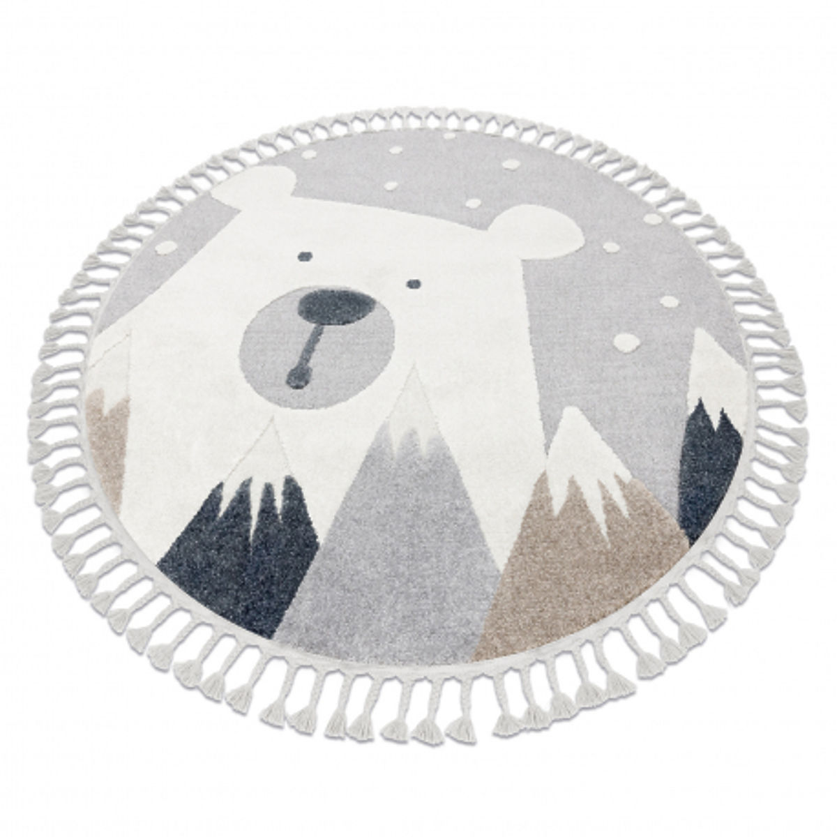 Banaby.ie » Children's furniture / Children's rugs / Children's rugs / Round Carpet YOYO EY81 Gray/White - Bear, Mountains for Children, Structural, Sensory Fringes