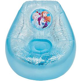 The inflatable chair with glitter and a theme from the animated film Frozen will be a great addition to any girl's room. The chair is perfect for watching cartoons or reading books.