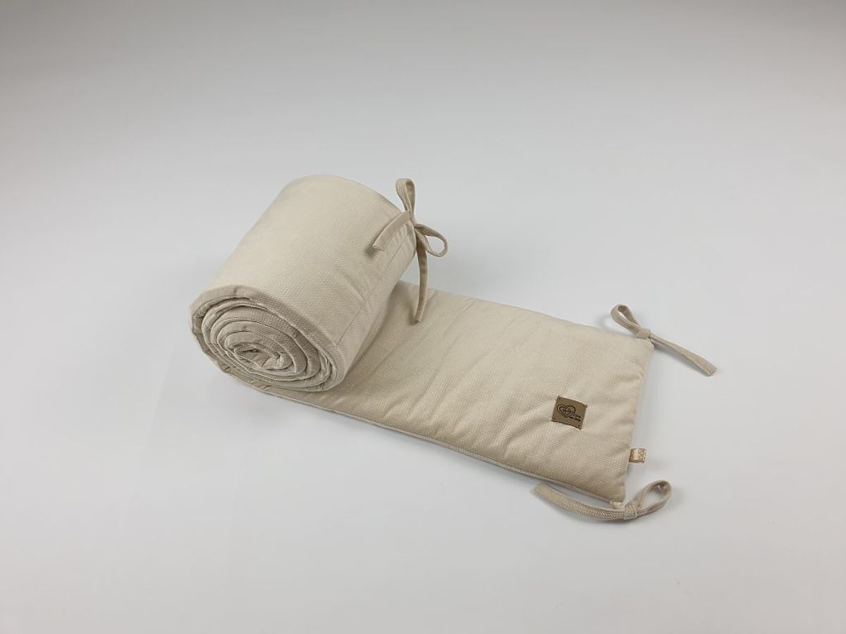 Beige crib bumper with soft velvet and anti-allergenic filling. .. more