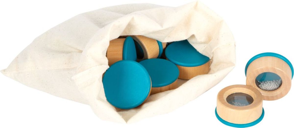 The goal of this sensory game is to recognize, name, and match pairs of corresponding cylinders based on listening to their sounds. 16 wooden boxes are filled with various materials, such as wooden balls, metal balls, or plastic beads, which produce different sounds when shaken. Thanks to the transparent windows at the bottom of the containers, you can check their contents. The game is designed for 1-4 players. After the game ends, the wooden boxes can be stored in a practical cotton bag.