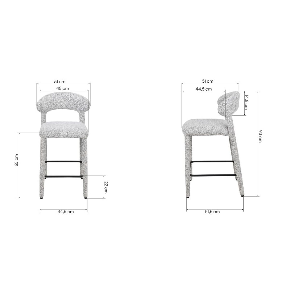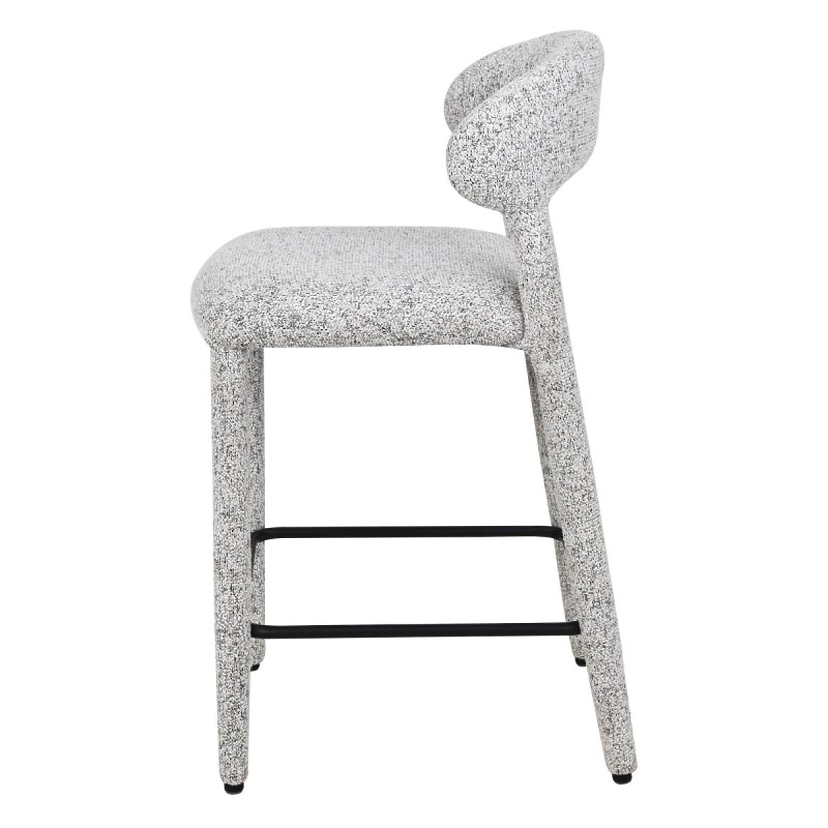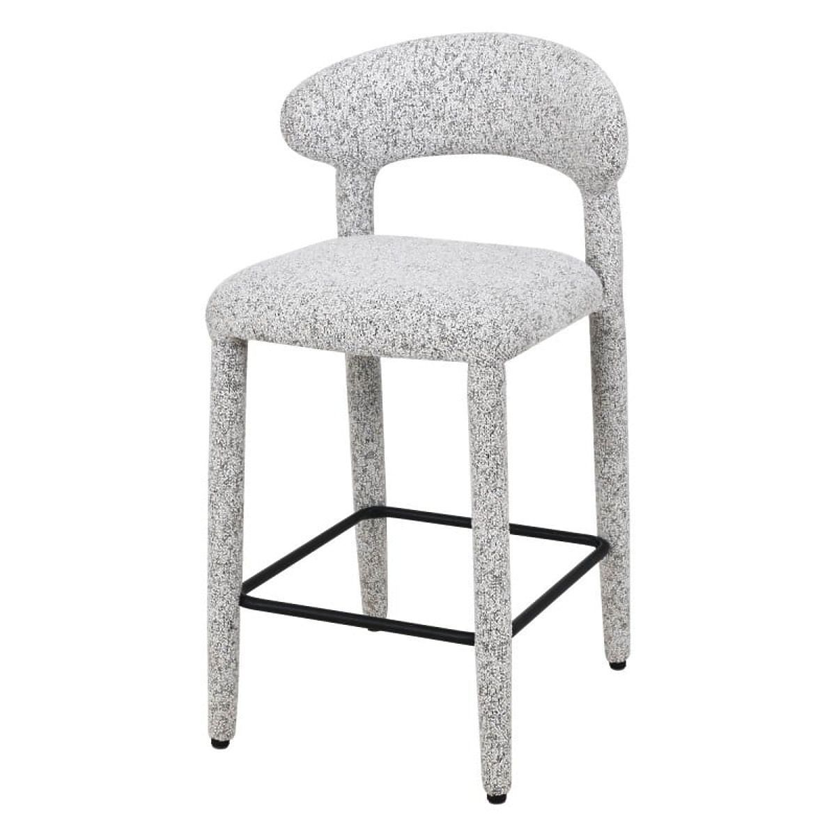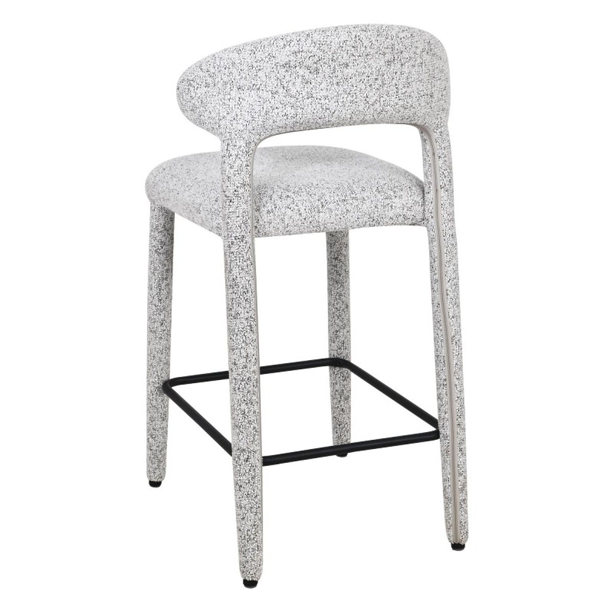 Hiroki bar stool with beige-grey melange upholstery and metal footrest. .. more