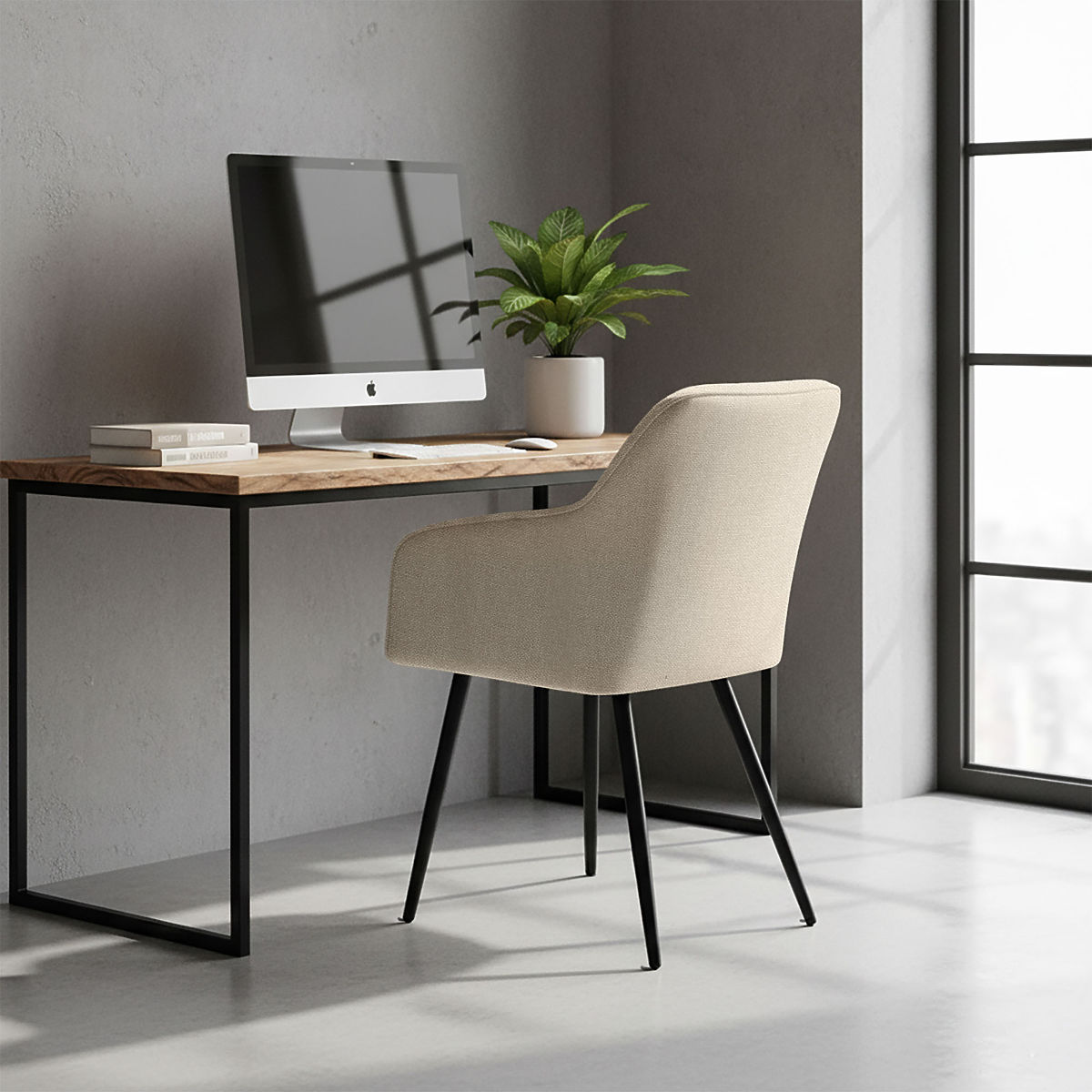 Beige upholstered chair with black legs and Lumos fabric. .. more