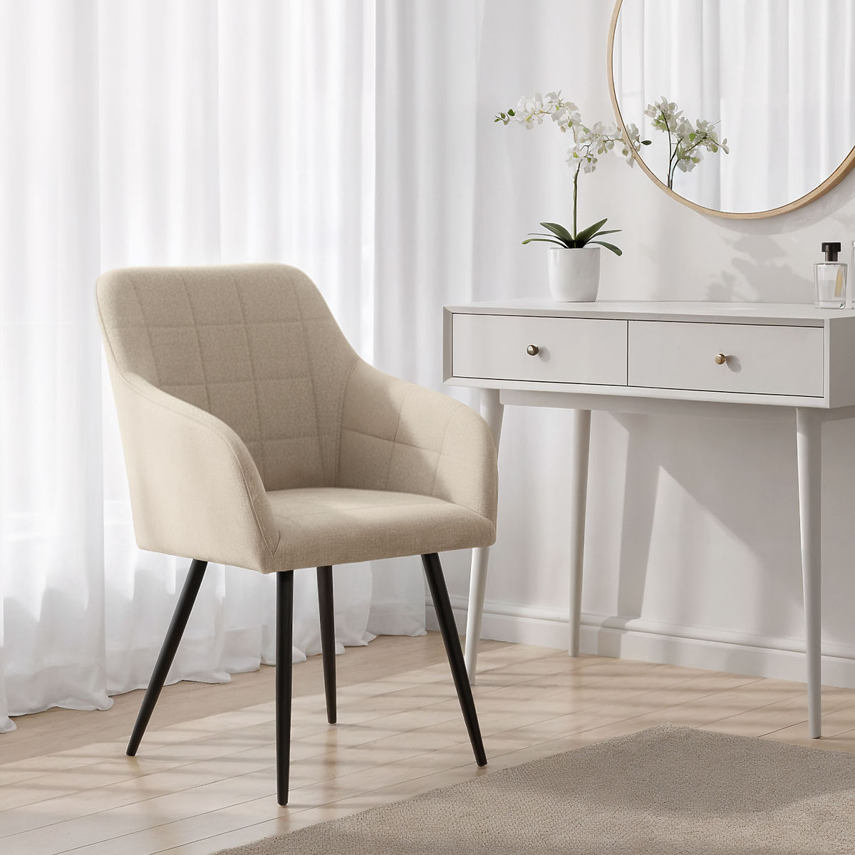 Banaby.ie » Furniture / Dining room / Dining chair / 4x Upholstered Chair with Square Quilting Beige LUXANO Black Legs Lumos Fabric
