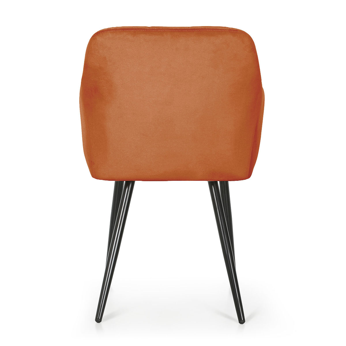 Copper velvet upholstered dining chair with black steel legs. .. more