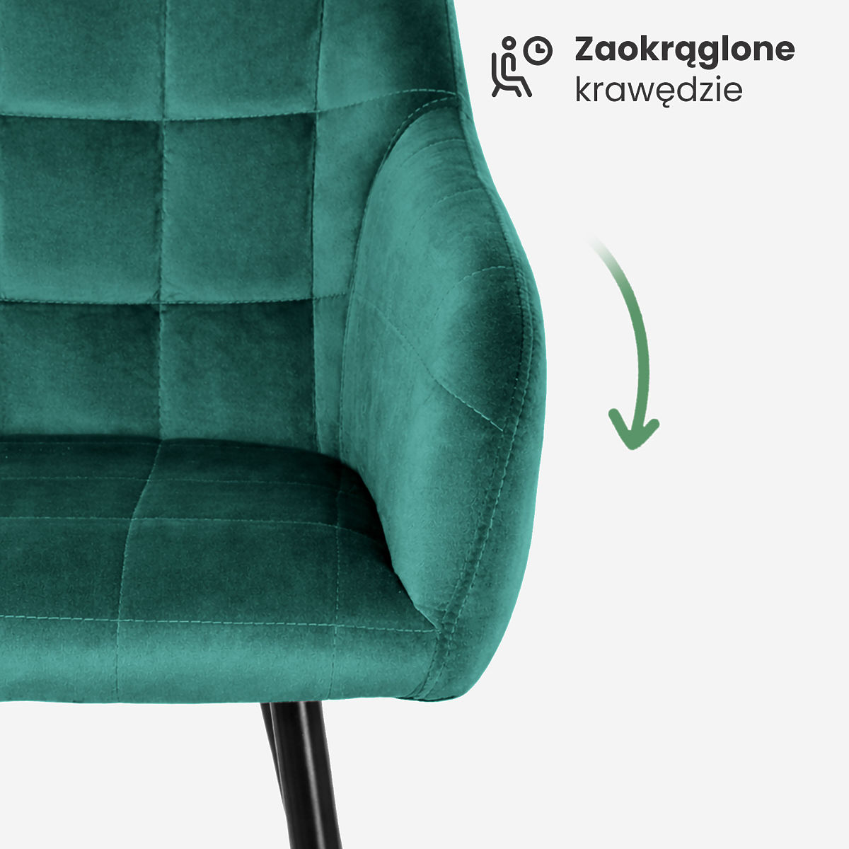 Banaby.ie » Furniture / Dining room / Dining chair / 4x Upholstered Chair with Square Stitching Bottle Green LUXANO Black Legs
