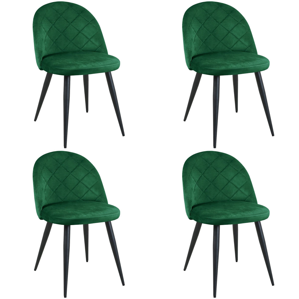 4x Velvet Upholstered Quilted Chairs SJ.077 Bottle Green