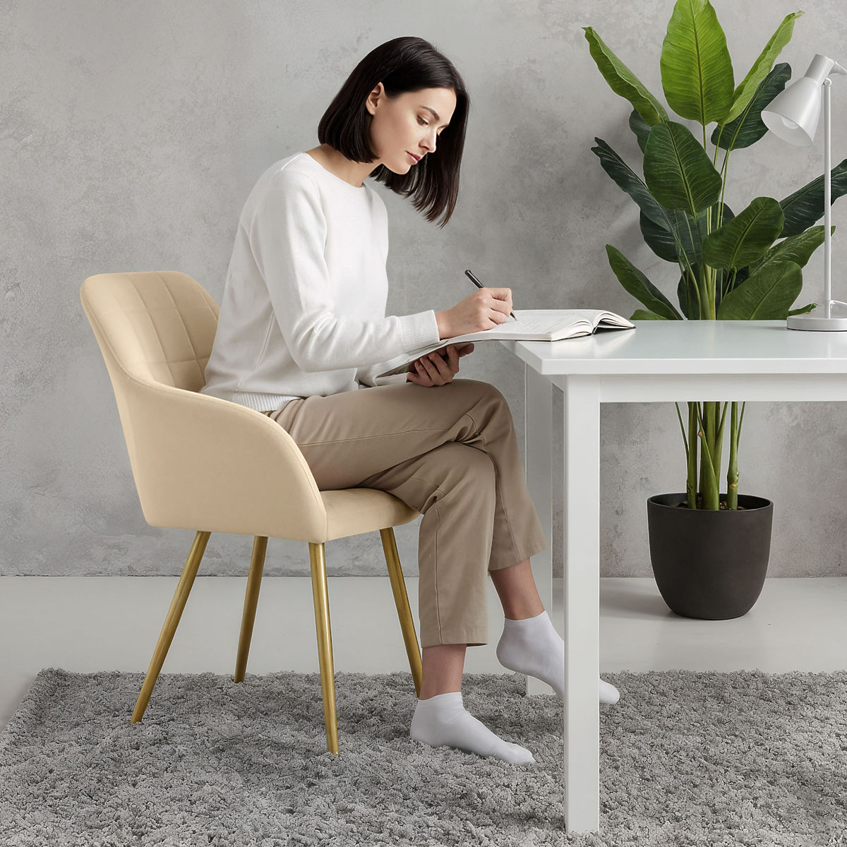 Banaby.ie » Furniture / Dining room / Dining chair / 6x Upholstered Chair with Square Quilting Beige LUXANO Gold Legs