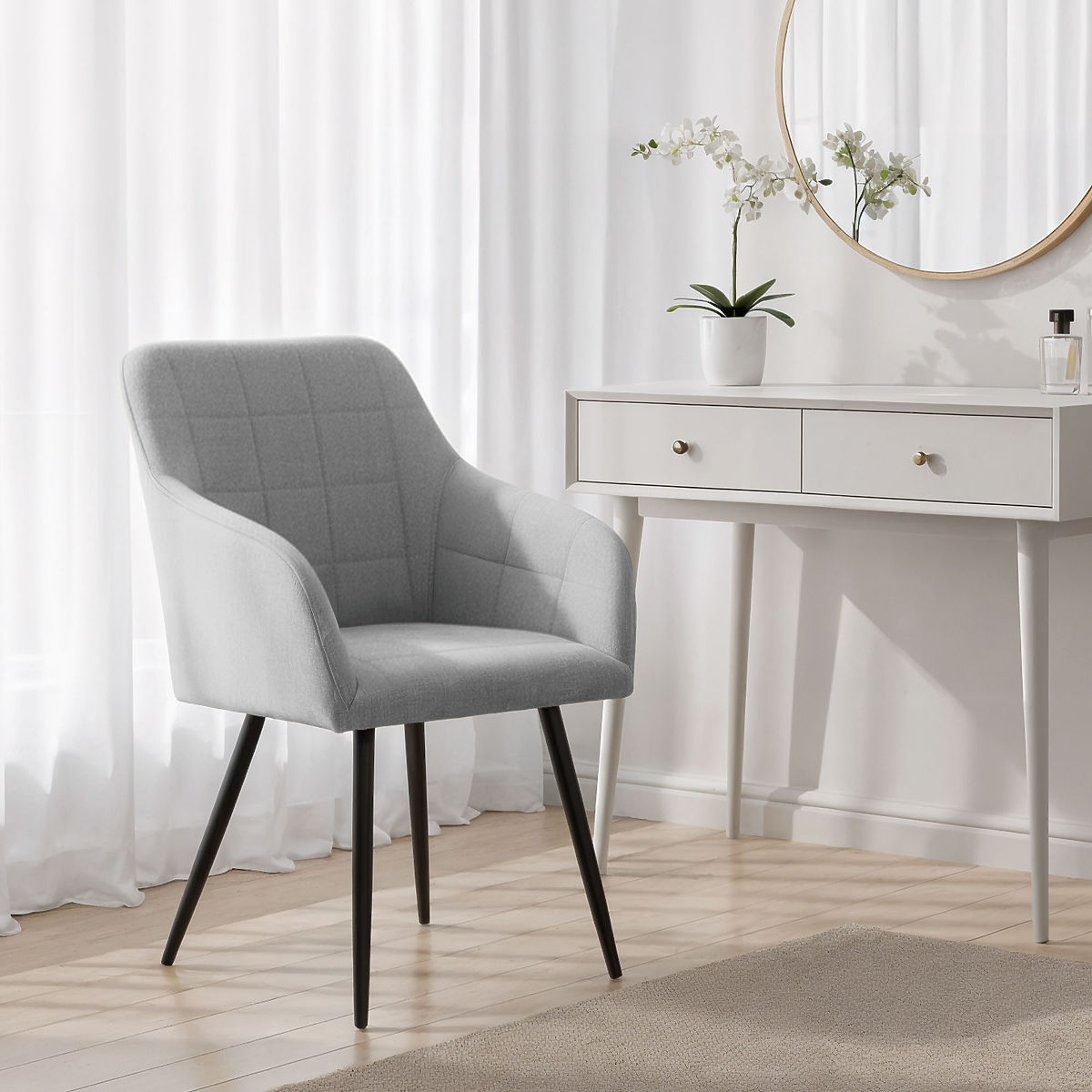 Banaby.ie » Furniture / Dining room / Dining chair / 6x Upholstered Chair with Square Quilting Light Gray LUXANO Black Legs Lumos Fabric