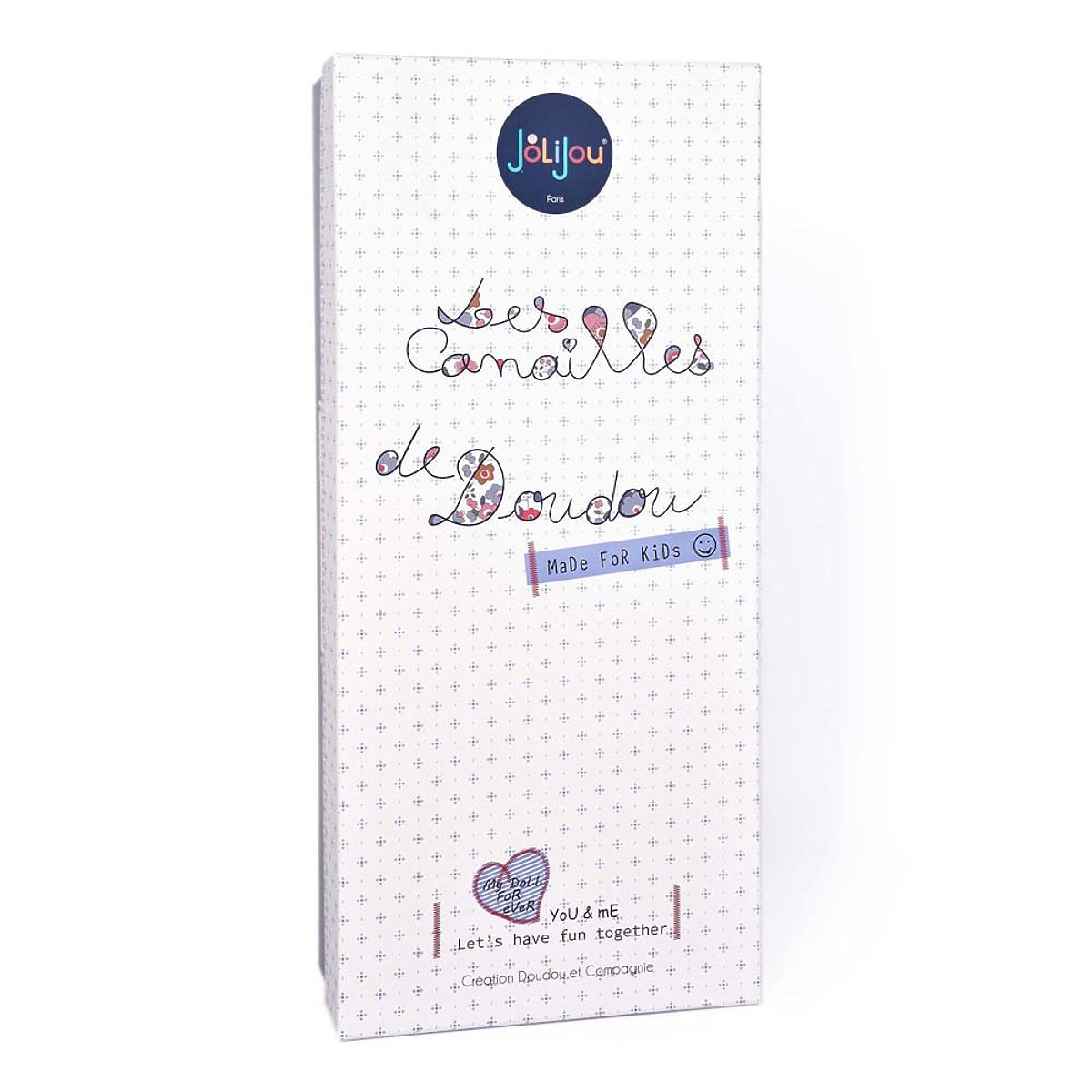 The fabric doll Capucine is an eternal optimist, turning small mishaps into old memories. She loves wearing short dark pink pants, a blouse with colorful flowers, and dark pink ballet flats. Her look is completed with a pink headband featuring a large bow with a piece of white tulle. The clothes can be taken off and put back on. The doll comes in an original gift box. The toy meets European safety CE standards. Maintenance: Wash in a bath at 30° Recommendation: Natural or low-temperature drying. Main features: suitable from birth cotton face, embroidered eyes and mouth, and freckles doll with accessories that can be dressed and undressed in a gift box