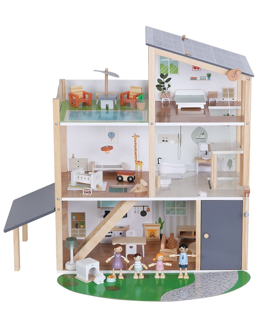 Welcome to the dollhouse where living is pure joy! This spacious wooden house is fully equipped with furniture and accessories. Inside, you'll find a roomy .. more