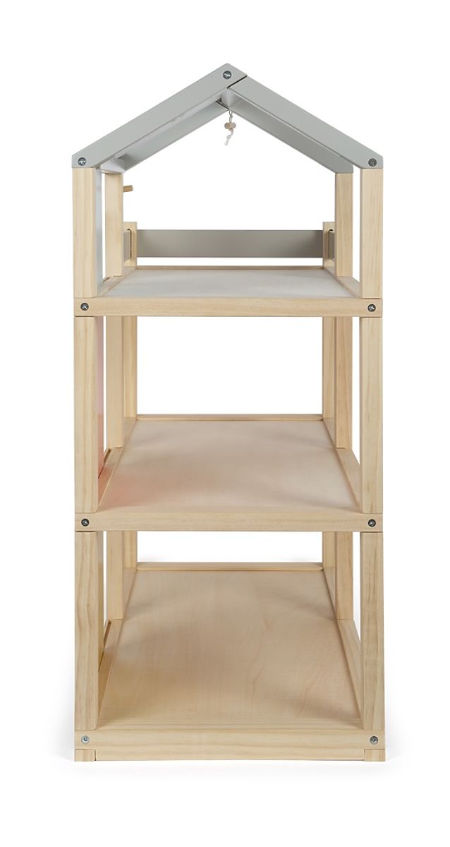 This large wooden dollhouse in Scandinavian style with three floors and a spacious rooftop terrace will not only become a fun and creative toy but also an interior accessory that will stand out in any room. The dollhouse has three floors. It consists of a cozy bedroom, a children's room with a giraffe slide, a stylish bathroom, a modern kitchen, a charming dining room, a cozy living room, a spacious rooftop terrace, and is fully furnished with intricately detailed furniture for dolls. Thanks to the sliding back walls, the interior appearance can be changed again and again. The walls are double-sided, with one side having a natural wood appearance and the other side painted in color. The dollhouse is ready for play immediately—no additional accessories are needed. Main features: for 12 cm dolls, spacious rooms and large rooftop terrace, fully furnished, open front wall facilitates play, fun and creative toy, tasteful interior accessory, supports creativity and enhances spatial perception, promotes the development of motor, speech, and social skills.