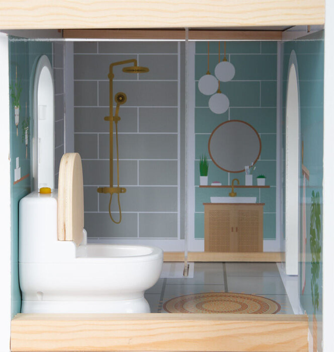 This modern dollhouse features an open front with beautiful artistic details and a contemporary interior. It includes a combined kitchen with a dining area, bedroom, bathroom, and a small terrace with seating. It's the perfect toy for imaginative play for children. The open living space features a spiral staircase, opening windows, and a modern bathroom on the ground floor with plexiglass. It also includes 8 pieces of furniture, textile accessories like bedding and pillows. A large terrace with seating, opening toilet, kitchen cabinets, and a fridge with doors, as well as drawers, ensure realistic play. The bench and bed have textile pillows, and the bed also has a duvet. This doll villa will fit into any living room or children's room thanks to its bright facade and modern colors. The open side allows several children to play with the dollhouse at the same time. Suitable for dolls up to 12 cm. Main features: 3 rooms, terrace, garden functional plastic furniture with wooden details bright exterior and modern color scheme compact and stable wooden dollhouse with many details inside and out 2 floors connected by a spiral staircase modern interior design, opening windows, shower wall made of plexiglass compatible with LE11804 figures
