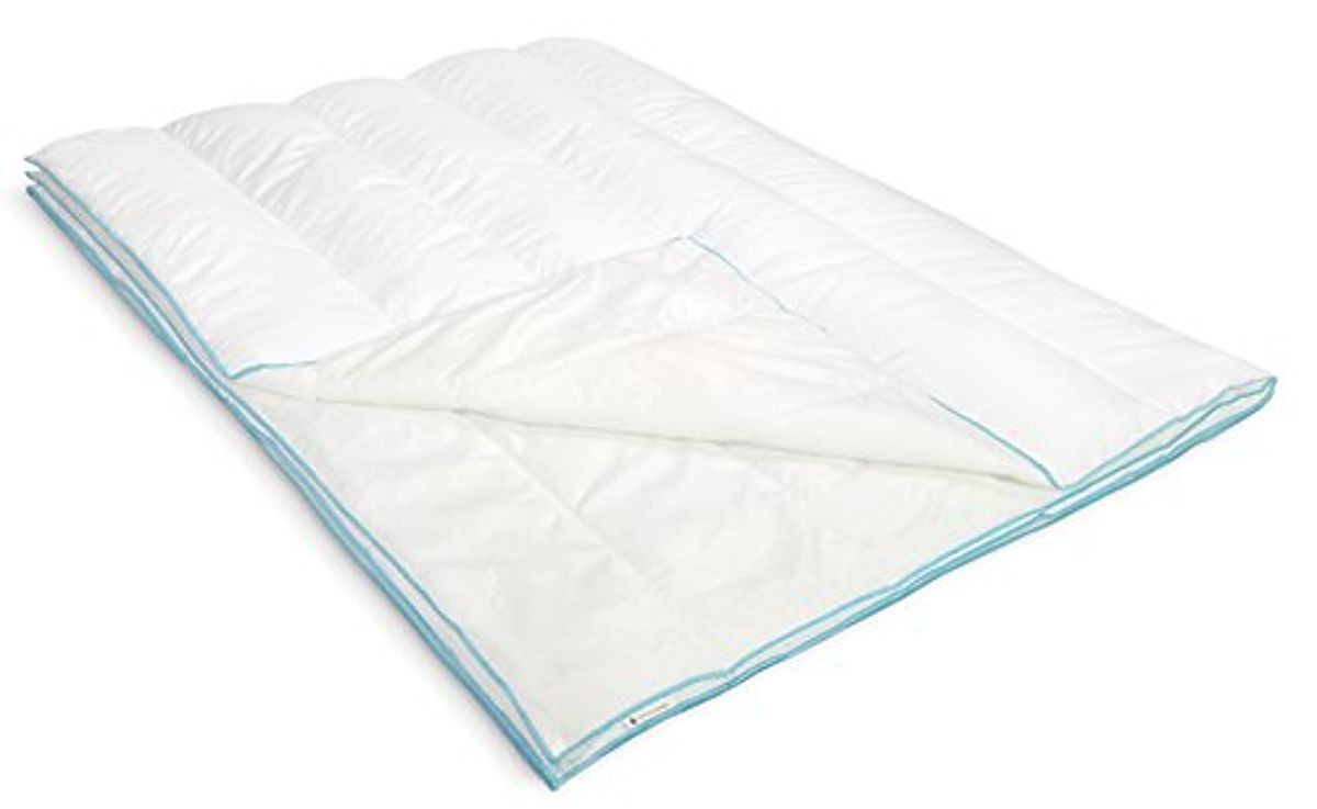 Classic white summer blanket with polyester filling. .. more