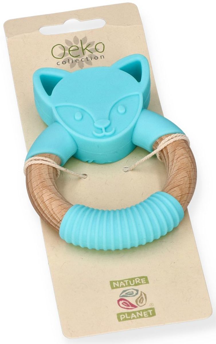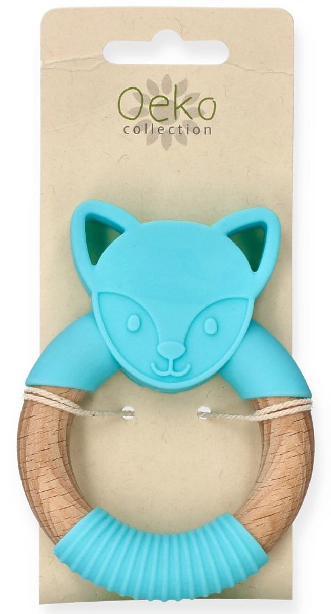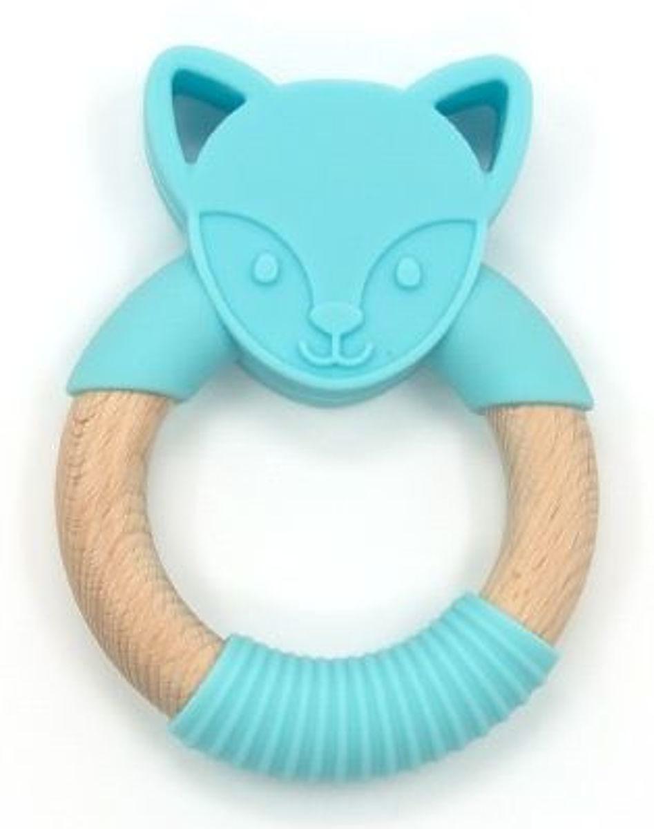Itchy gums no longer have to be a problem. Here is not only a practical product but also a beautiful decoration and hand toy with a blue wolf motif. Thanks to the use of safe silicone, a child can chew on this product without fear of harmful substances entering their body. The wooden ring, onto which a soft silicone layer is fitted, is ideal for chewing. The protrusions on the teether and the striped layer will surely soothe sore gums from which small teeth are emerging.