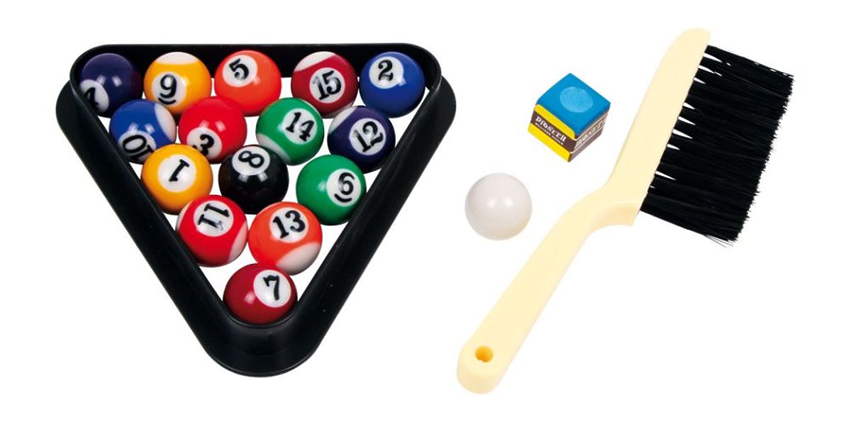 The elegant, sturdy table allows for comfortable play anywhere. You can set up the toy on the floor, on a table, or even on a flat surface outside, like in the garden. The center of the table has an elegant cover, allowing the balls to move smoothly across the surface, giving the whole set a professional character. Despite its relatively small size (51 x 31 cm), the game is very comfortable, even for adults. The glass balls move similarly to those on a real billiards table. You can easily break the grouped balls with the first strike. You can play technically or with power. The strikes can be weaker or stronger, precise or less so - just go ahead :) The pocketed balls have grooves on both sides, sliding into side holes, so after the game ends, you can easily remove them and prepare for the next round.