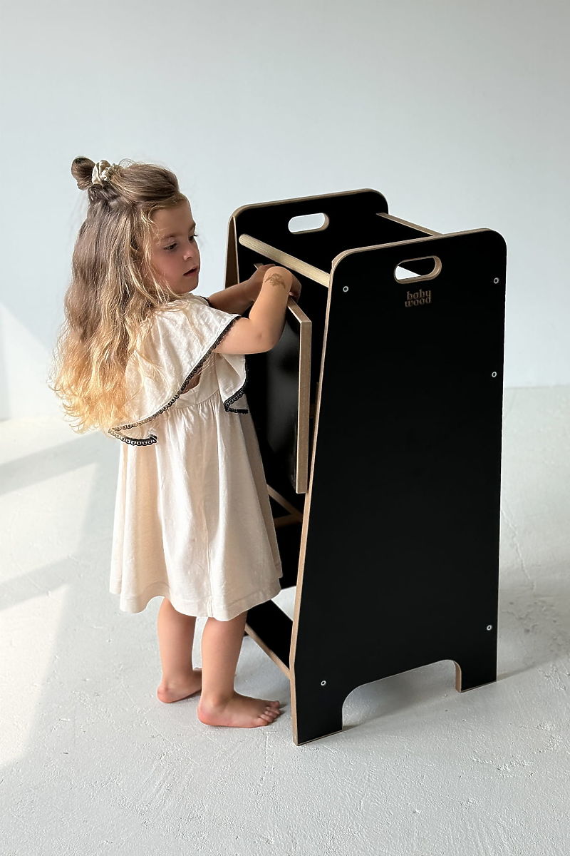 Learning Tower Comfort offers a safe and practical solution for families who want to involve children in everyday kitchen activities. With its sturdy construction and proper working height, it allows a child to stand comfortably and securely while preparing food, with parents having everything under control. The minimalist design easily fits into both modern and classic kitchens. This kitchen helper creates space for shared moments, learning, and the development of independence. Children can naturally acquire new skills and gain confidence in daily activities.