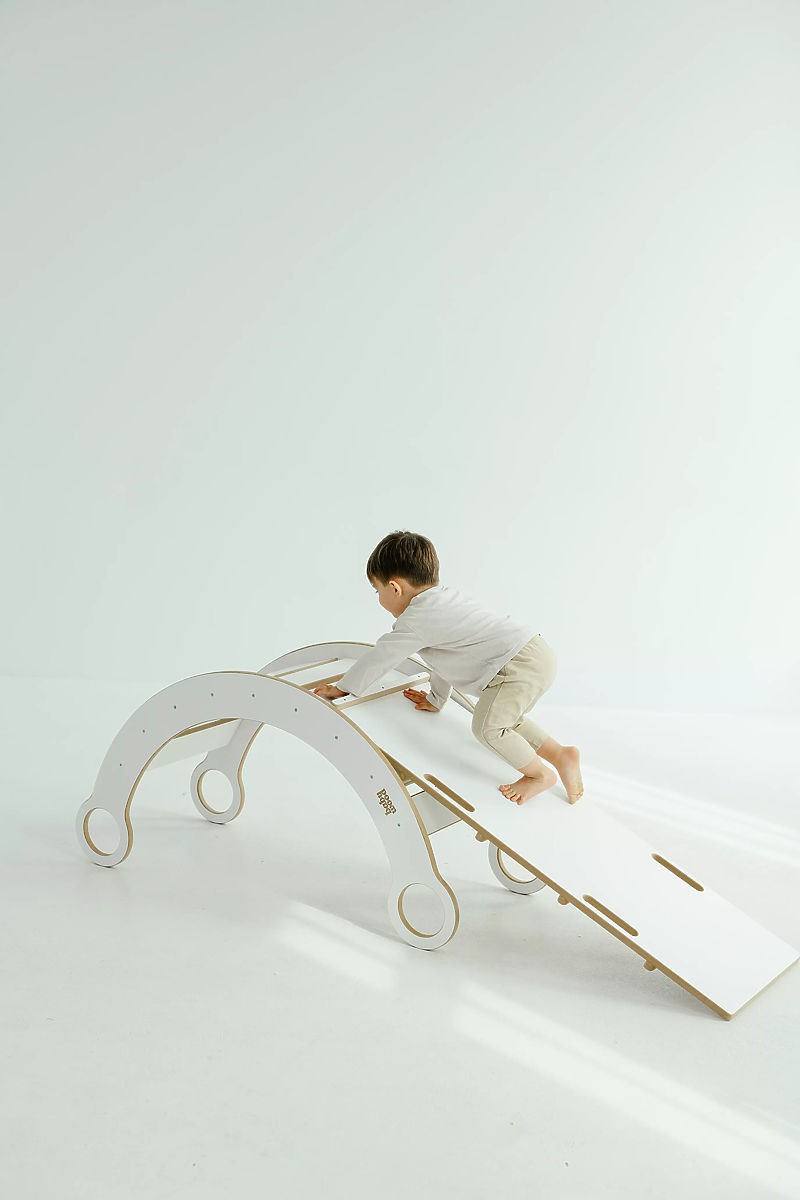 Banaby.ie » Montessori / Montessori rockers / Wooden Montessori Swing with Slide/Climbing Wall L - White