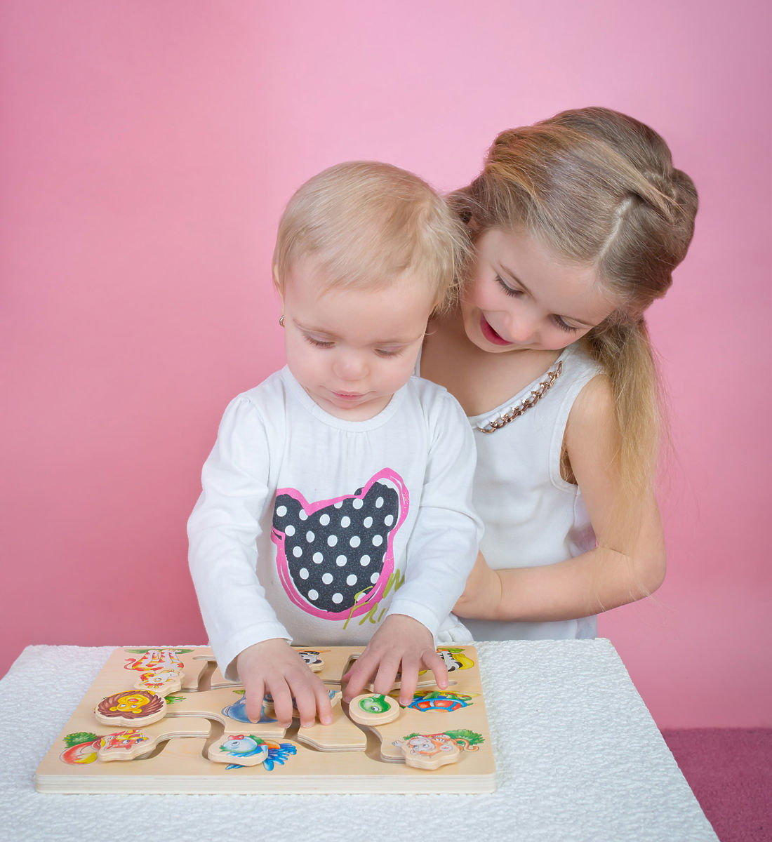 What does a giraffe look like and what head does a lion have? For skillful children, it will be a breeze to correctly match the whole animal together. The toy is durable, made from strong plywood. Main features: durable wooden construction