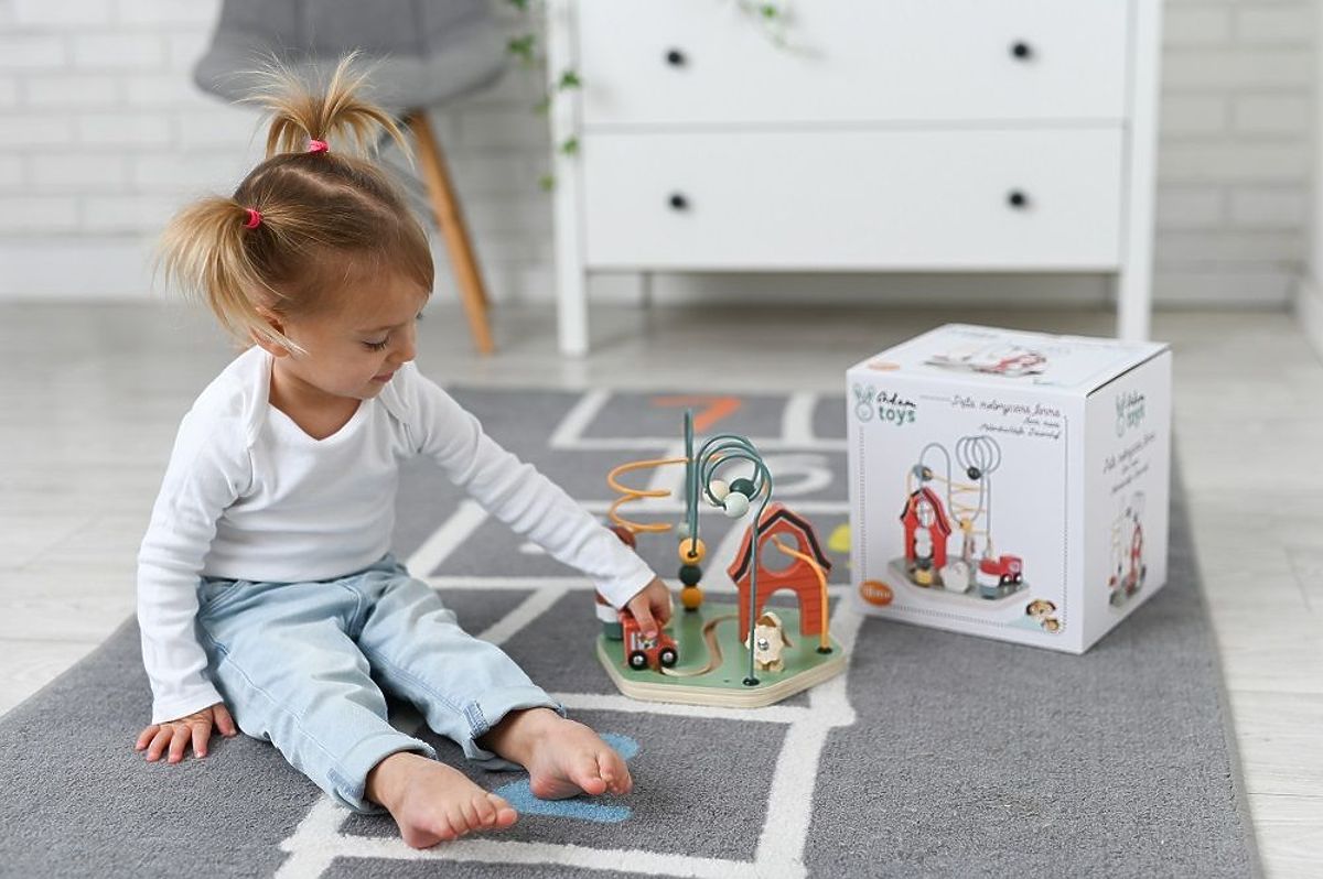 A trip to the countryside is a great experience – a farmer at work, a piglet riding away from the trough, or a cow grazing in the meadow. Now, with the motor skills game from AdamToys, your child can explore country life and the farm with animals.