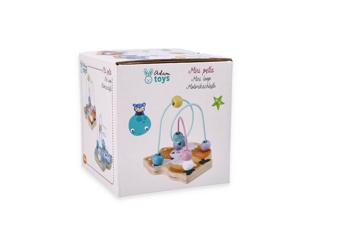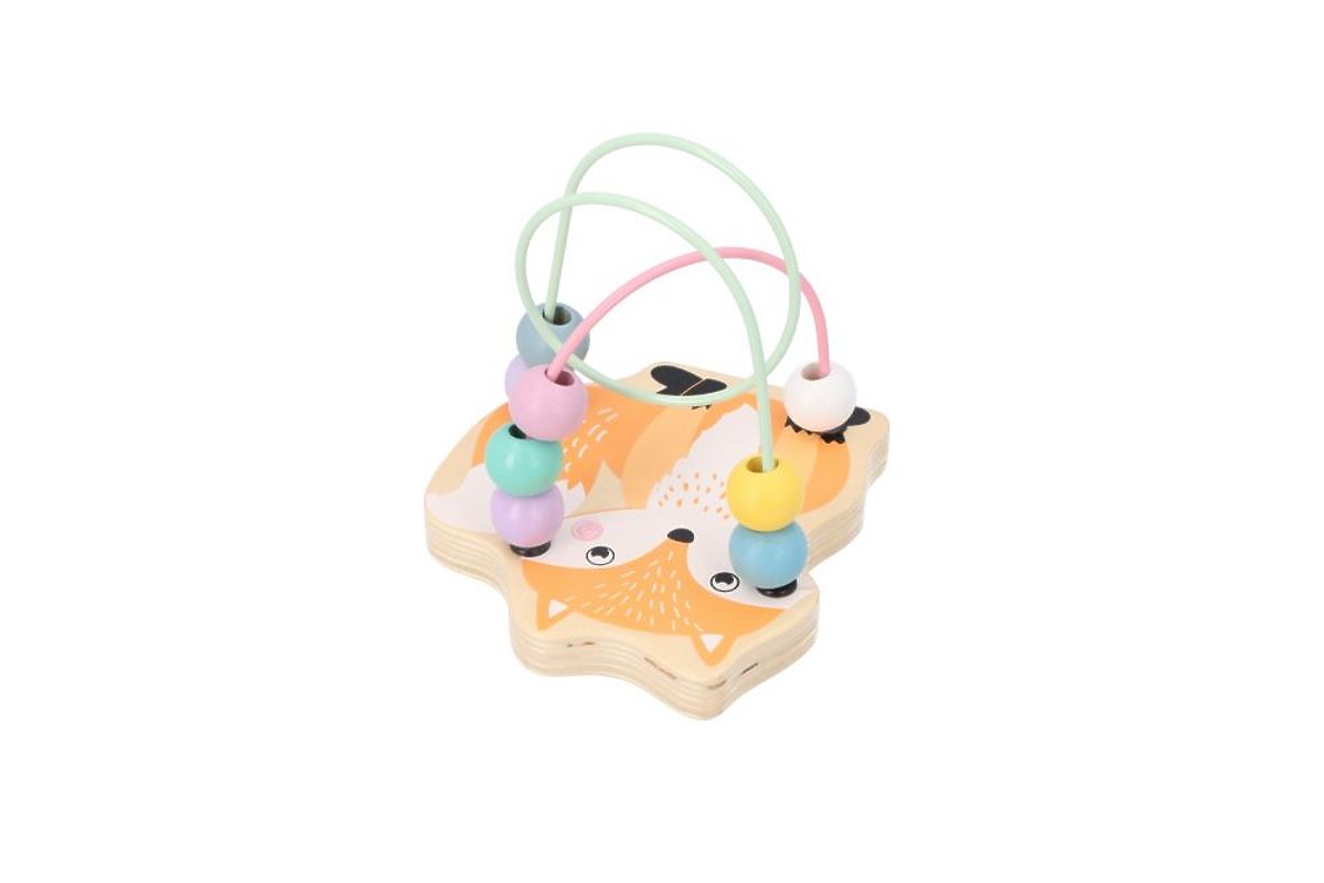 The toy consists of a base featuring a Fox, 2 metal wires bent to form loops, and each wire has 4 wooden beads. It is all packed in an aesthetic box, ideal as a gift.