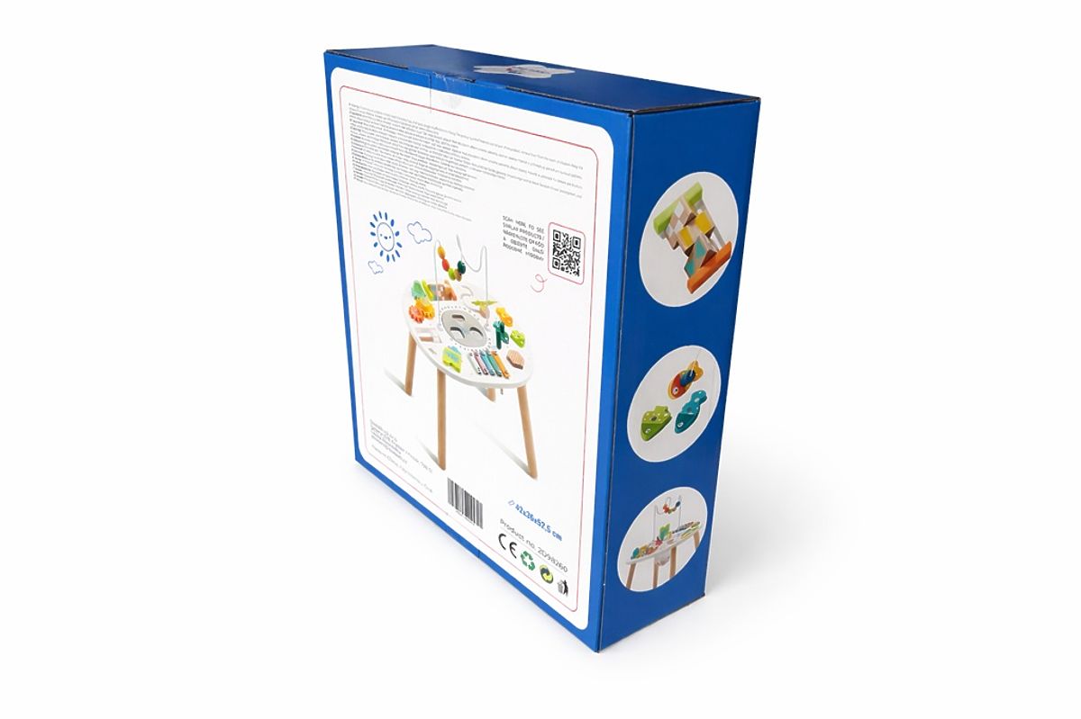 Discover the magic of the multifunctional motor skills table, offering children endless opportunities for exploration. This activity table is designed to develop the senses, motor skills, and creativity of toddlers while keeping them entertained for a long time. It features everything little hands love – a bead maze, shape sorter, xylophone, gears, magnetic fish, and much more.