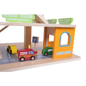 A wooden three-story garage with a track and toy cars will appeal to all little drivers. Thanks to the three-story garage, your little car lover will spend long hours parking and maneuvering his toy cars. A garage is certainly a great addition to your home car collection.