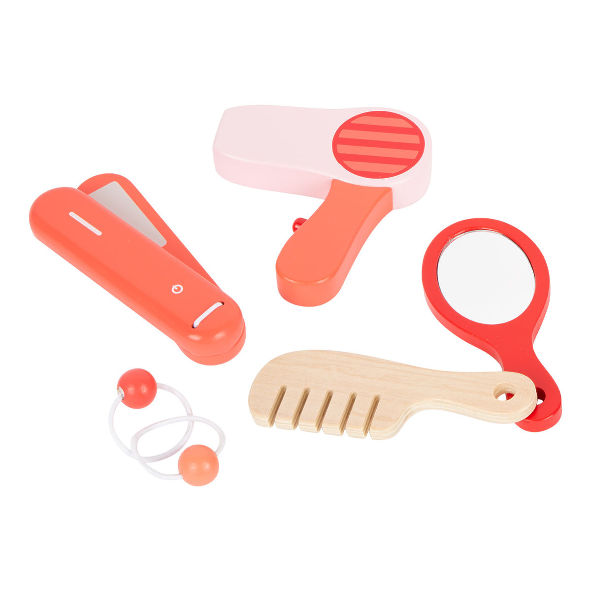 Make-up artists, this is for you! The cosmetic suitcase made of wood is perfect for role-playing. The comprehensive set consists of a comb, mirror, hairdryer, .. more