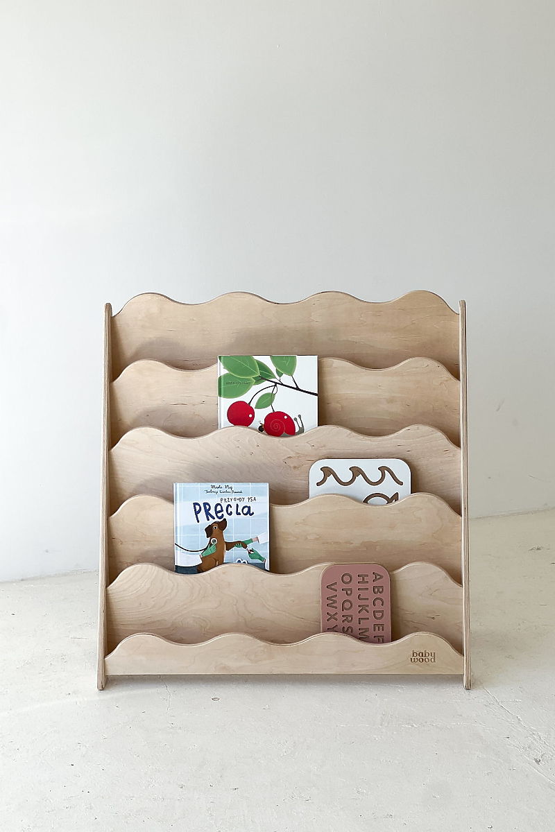 WAVE M Bookshelf for kids with wavy edges and open shelves. .. more