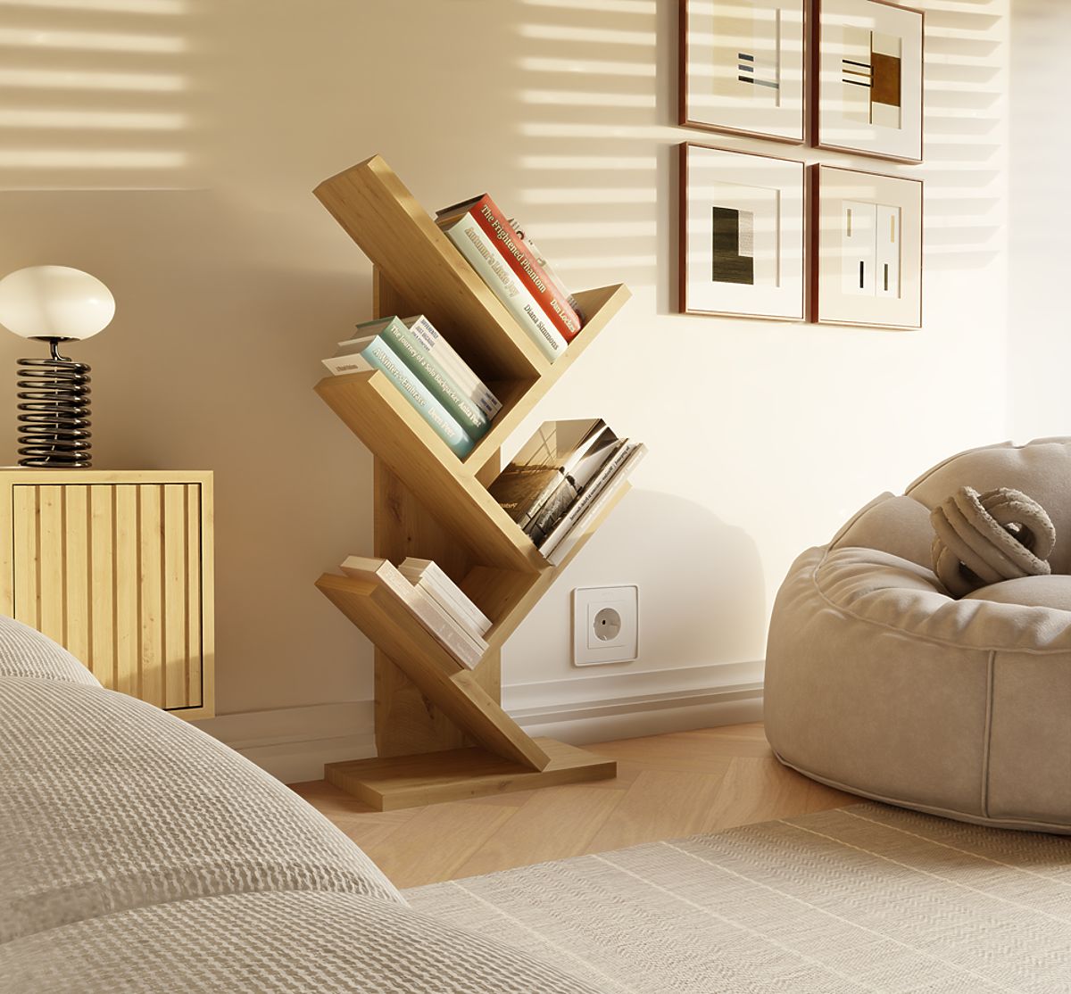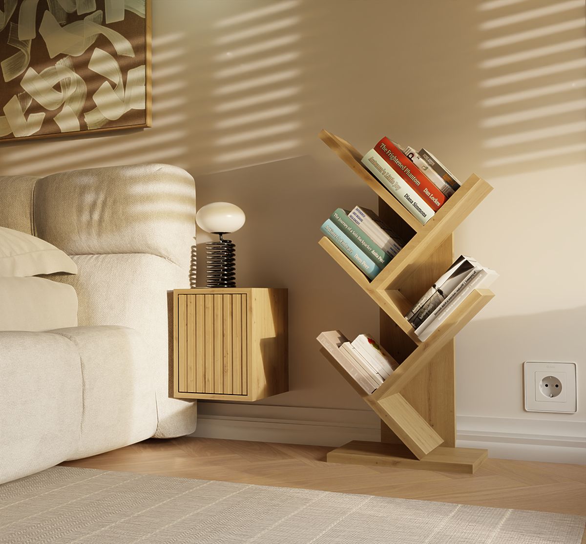 Thanks to its compact dimensions, the shelf fits even in small rooms, serving as a stylish and practical interior element.