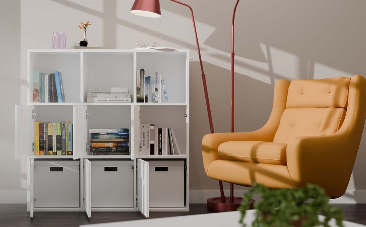 • 9 identical compartments – ideal for books, boxes, documents, toys, or decorations