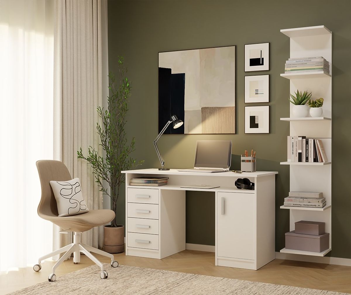 The 6P shelf is a minimalist and functional piece of furniture, perfect for the living room, office, student room, or home library. Thanks to its light, modern form and neutral white color, it easily adapts to many interior arrangements.