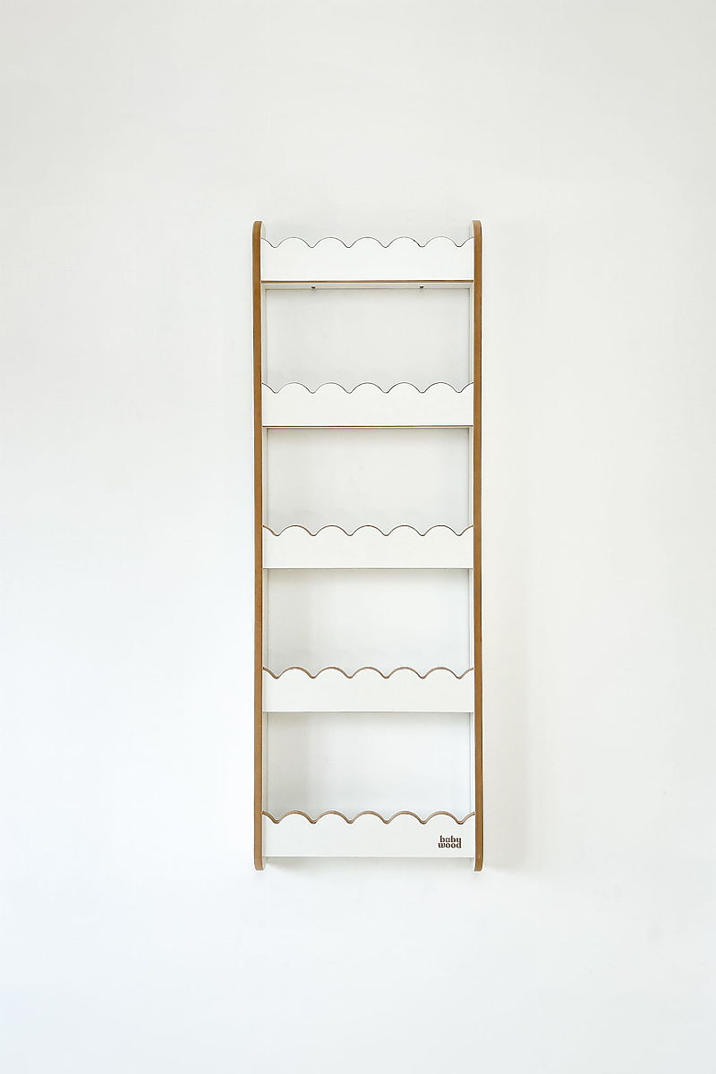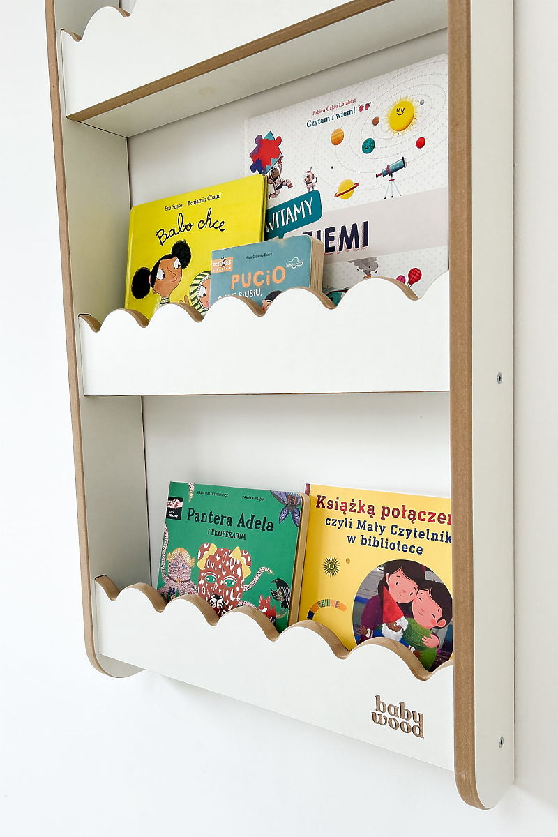 WAVE L Shelf in white color is a practical and decorative wall-mounted bookshelf that helps keep the children's room organized without taking up floor space. It is perfect for books, small toys, photos, or other valuable items of your child. By mounting it on the wall, the floor remains free for play and movement, which is appreciated by both children and parents. Elegant and functional design of the shelf allows easy storage and display of the child's favorite items. Rounded edges and quality craftsmanship ensure safe use even for small children.
