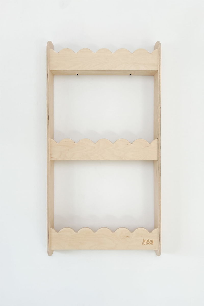 Natural wall-mounted shelf for books and toys, saving floor space. .. more