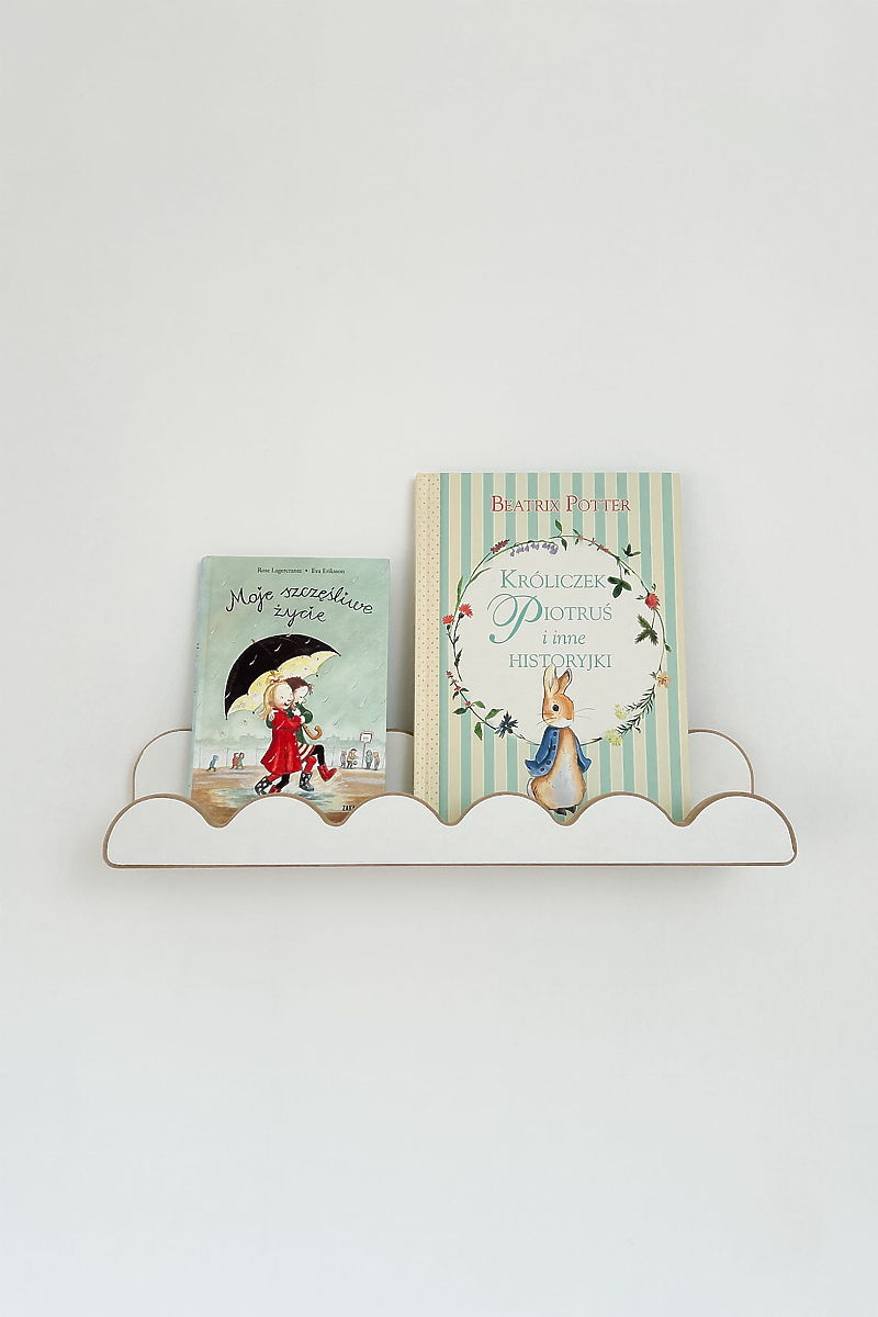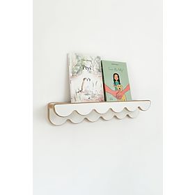 Shelf WAVE in white is a practical and decorative addition to a child's room, helping to maintain order while looking great. With the movable frill, you can change its appearance and the way you display or hide your child's favorite items – books, figurines, photos, or small decorations. The elegant design of the shelf allows you to combine several pieces side by side and create an original, functional, and aesthetic wall that grows with the child's needs. Rounded edges and smooth finish ensure safe use even for the youngest.