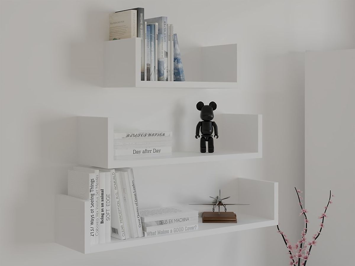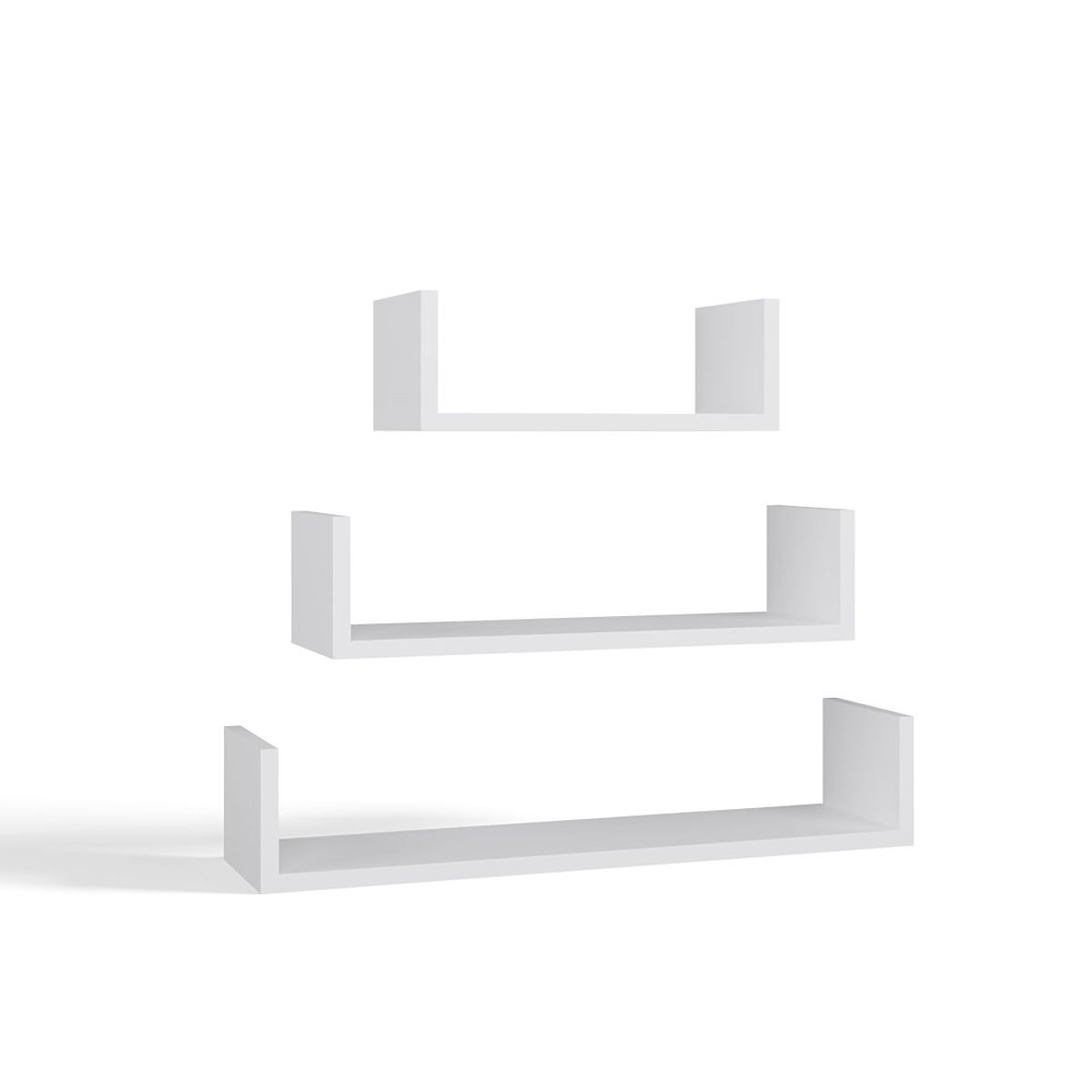 Set of 3 matte white wall shelves for versatile room decoration. .. more