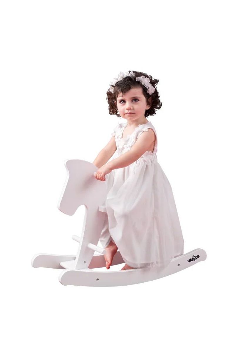 The beautiful white rocking horse is a classic, traditional toy for young children. Its modern, minimalist design ensures perfect adaptation to any interior style. Children love rocking and imagine galloping through the world on the horse.