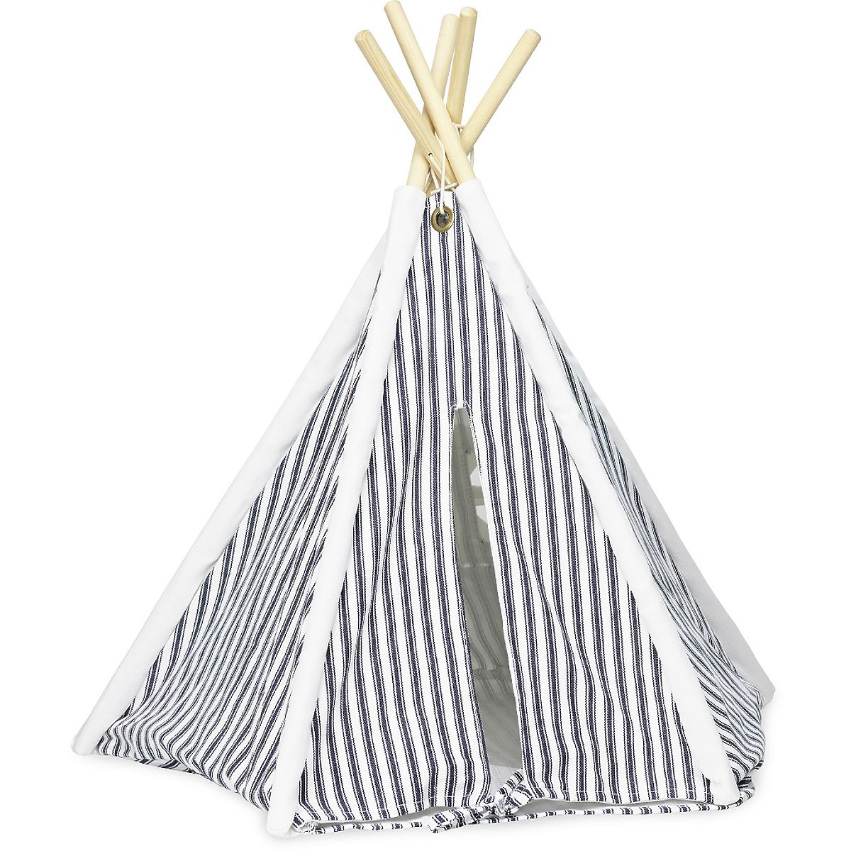 Beautiful striped mini teepee, perfect for dolls. The wooden base with a textile cover is easy to assemble. The textile is dark gray and white. Main features: .. more