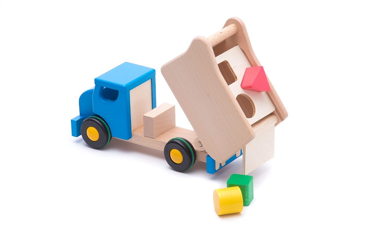 An insertable toy and wooden car in one. The car has three holes for colorful insertable shapes, and the top part is tiltable. So not only does it provide hours of fun, but this vehicle also teaches the child a very essential sorting concept that supports mathematical skills and the very first steps in critical thinking. We recommend cleaning the toy's surface with only a damp cloth. Please do not expose this toy to high temperatures or high humidity, as the wood may bend and warp under these conditions. It meets all European safety standards. Main features: tiltable car with colorful insertable shapes made from natural resources easily recyclable design by Wojciech Bajor