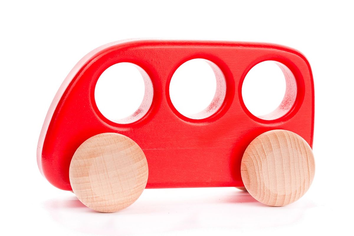 Wooden minibus with three windows that also serve as a grip for a small hand. The shape, curvature, and appropriately chosen size of the openings allow the child to explore finger grips and recognize shapes. Every movement of the toy, such as pushing, rolling, driving along furniture curves, or drawing lines in the air, helps the child discover space and dynamics hidden in the body. Playing with this bus develops gross motor skills. We recommend cleaning the toy's surface only with a damp cloth. Please do not expose this toy to high temperatures or high humidity, as the wood may bend and deform under these conditions. It meets all European safety standards. Main features: made from natural resources, easily recyclable, design by Wojciech Bajor, suitable for small hand grip, develops gross motor skills.