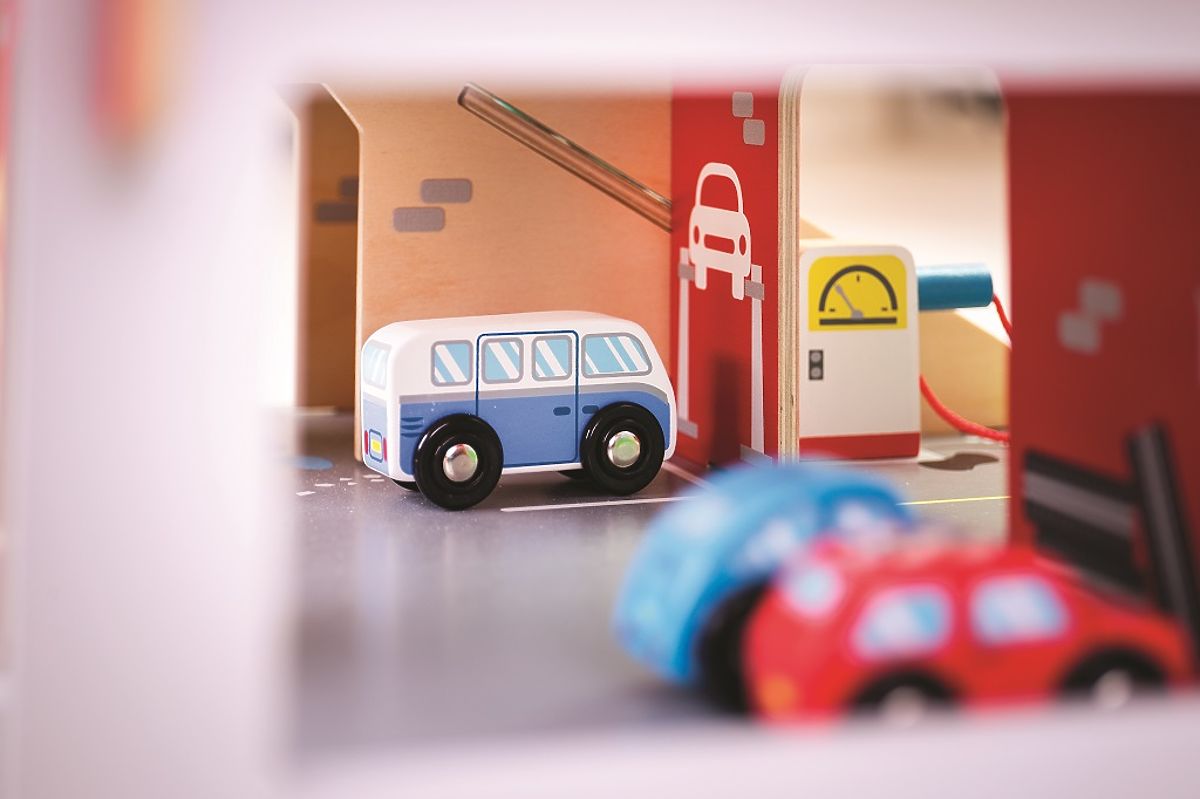Children will enjoy a fun-filled playtime on each of the three floors of the garage with a parking lot. On the ground floor, they can drive the car onto a working elevator and then go up to the second floor to park. On the ground floor, children will find a service station, car wash, and pump. Cars can leave the first floor using the elevator or the ramp, but be careful, cars must wait for the barrier to lift! The highest point of the garage is the helipad. This garage has everything a little driver needs to get from point A to point B. It supports creativity and imagination. It develops hand-eye coordination, fine motor skills, and dexterity. Can be complemented with Bigjigs Toys and Bigjigs Rail cars. Made from high-quality materials from responsible sources. Main features: 3 floors with parking and helipad, functional elevator, service station, car wash, and pump on the ground floor.