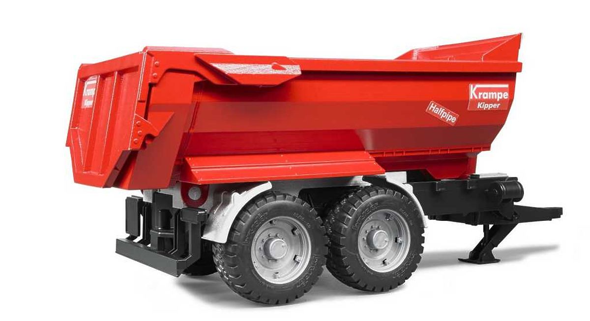 The Bruder KRAMPE Tipping Trailer with an automatic rear wall is a model of a tipping trailer crafted down to the smallest detail. It is a faithful plastic replica of a real trailer. It is compatible with Bruder tractors from the Super Pro series (020...) and the Premium Pro series (030...). Get figures and other BWORLD accessories for the trailer and enjoy even more fun. Made in Germany from high-quality materials. Main features: tiltable bed with an opening rear wall, compatible with Bruder tractors, made in Germany.