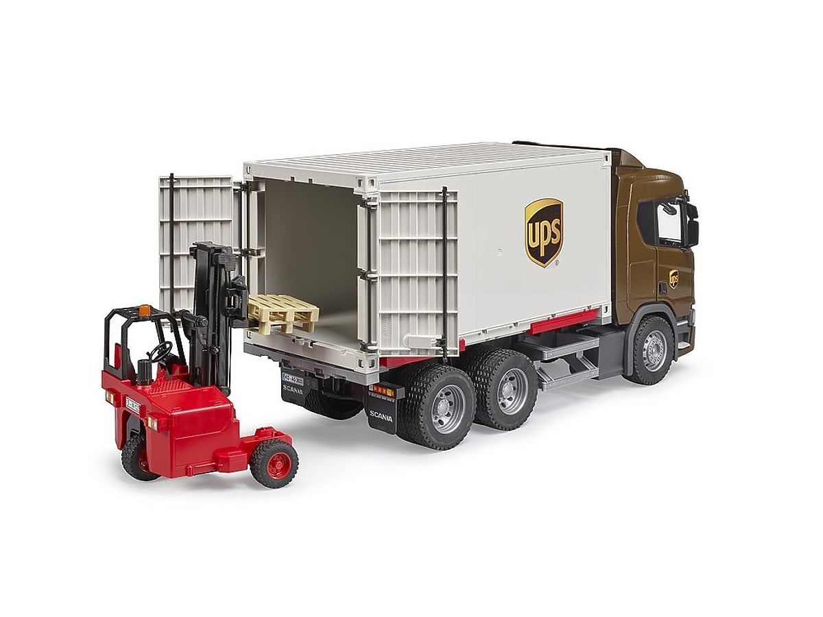 Banaby.ie » Toys / Toy cars and transport resources / Bruder Scania UPS Logistics Truck with Forklift