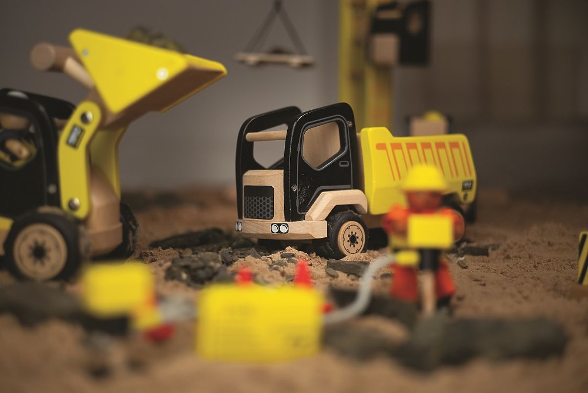 This durable and detailed wooden dump truck is perfect for transporting imaginary dirt and other construction materials. It features a tilting rear door and large, chunky rubber wheels that are ideal for smooth surfaces. The vehicle is overall designed to be easily grasped by small children's hands. It supports children's creativity and imagination. It develops hand-eye coordination and fine motor skills. Made from high-quality materials from responsible sources. Complies with European safety standards. Main features: easy to grasp, supports creativity and imagination, easy insertion of builder figures.